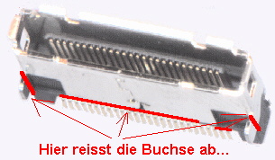 wichtigsten Arbeitsgänge ! Mit der Lupe die rausgefetzte Buchse anschauen
