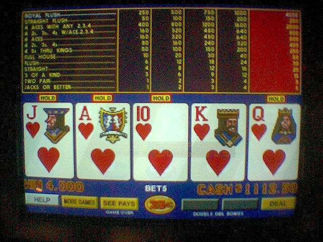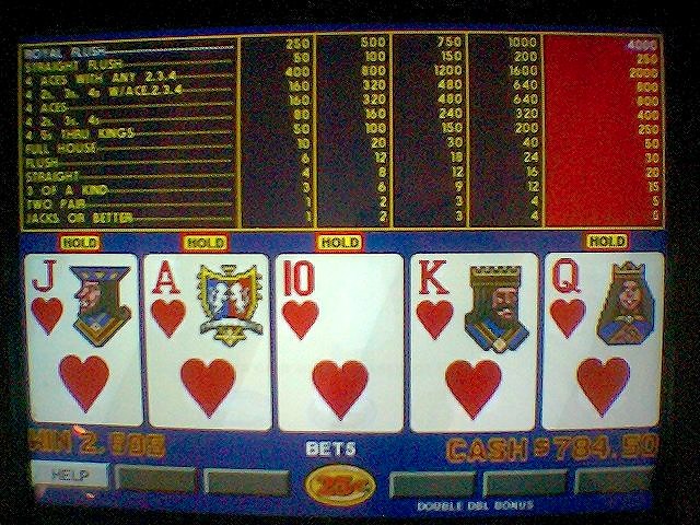 Uebrigens kurz nach Urlaubsantritt am 04 Mai dieses Jahres -nachdem das 2009 ausnahmsweise mal nicht geklappt hatte- ballerten mir die FullPay 25 Cent Maschinen einen herrlichen "ROYAL FLUSH" um die Ohren. 4 Karten liefen rein und die fehlende 5te kam dann auch noch. Mittlerweile habe ich aufgehoert die RF zu zaehlen. Klingelng 1000 Bucks und das 5 Minuten bevor ich zum Fruehstuecken ins Buffet wollte. Das habe ich dann auch gemacht und sass da mit einem fetten Grinsen und meinem ca. 1100 US$ Cash-Voucher in der Tasche...