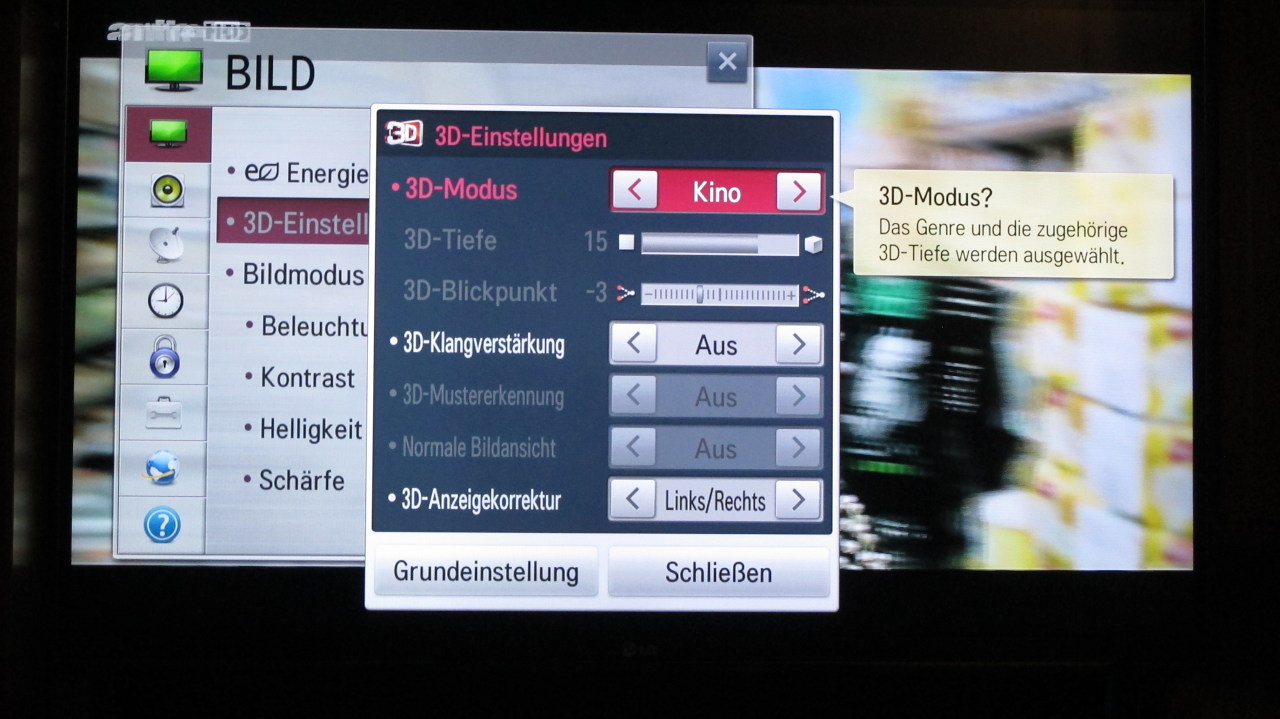 Hier diese Bild & Ton Basis-Einstellungen (hierzu gehoeren auch die 3D Einstellungen) im Standard-Einstellungs Modus: