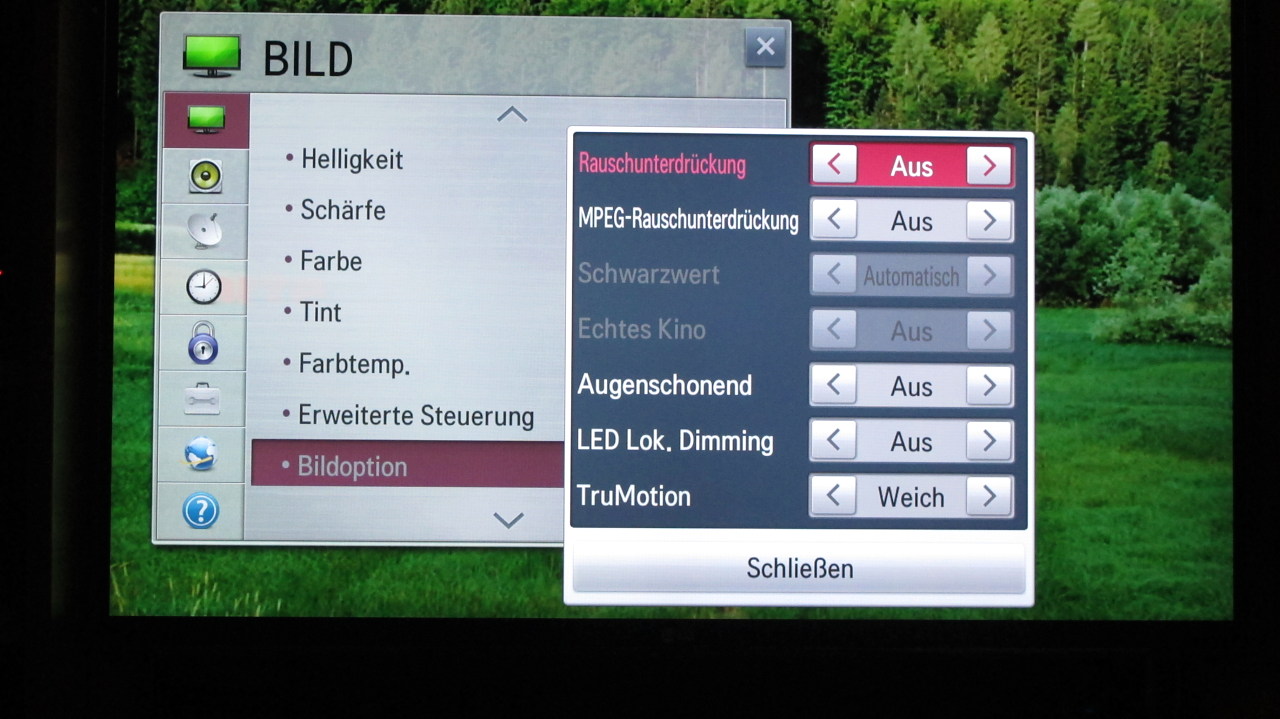 Diese Einstellungen habe ich mit viel Geduld und Testerei auch gefunden und nutze diese schon eine ganze Weile zum TV; 3D TV und BlueRay Betrieb. Auch Internet und Smart-TV laeuft damit sehr angenehm, sodass Standard-User mit diesen Einstellungen durchaus sehr gut leben koennen ohne sich grosse Sorgen um andere Details machen zu muessen. Hinweis: So man irgendwie die Moeglichkeit hat ein CI+ Modul im Schacht des LG zu verwenden, UNBEDINGT ein CI+ Modul verwenden ( SAT und DIGITAL-Cecoder sing im LG fest verbaut ). Die Bildqualitaet gerade auch im SD-Betrieb erreicht eine Qualitaet welche man extern zugespielt einfach mit keiner Settop-Box auch nur Naehrungsweise erreichen kann. Ausserdem spart man Strom ( man braucht weder eine Settop-Box noch eine Fernbedienung ) und man kann alles mit dem TV in bester Qualitaet steuern und erleben. Egal ob HDTV ( das sieht dann natuerlich bestechend gut aus ) oder SD ( was auch grossen Spass auf dem LG macht ).