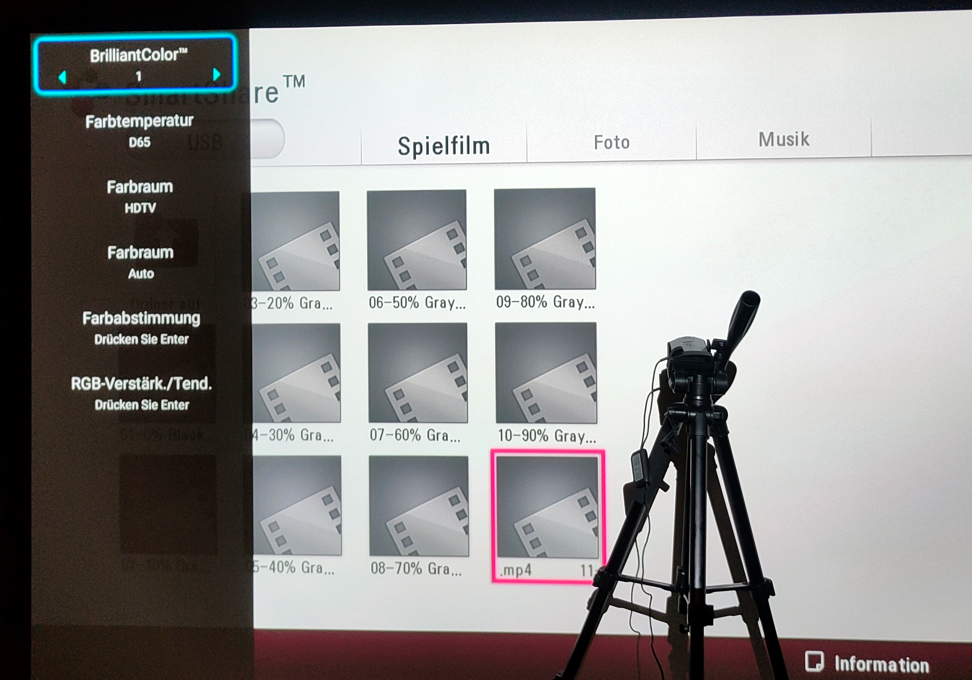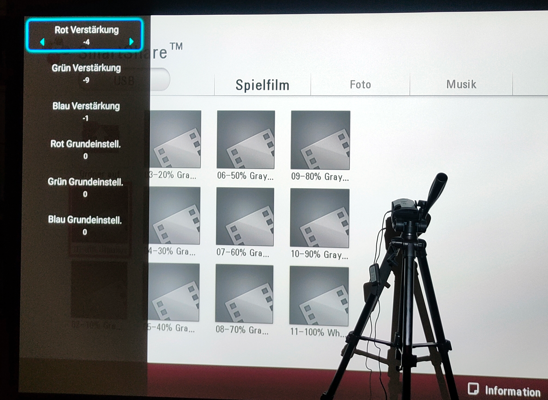 HINWEIS: Nach obigen Einstellungen kann man den Beamer im 2D Betrieb halbwegs brauchbar betreiben. Allerdings haben die Einstellungen NICHTS mit einem sauber kalibrierten und normgerechten Beamer zu tun. Auch sind die obigen Einstellungen nicht als Basis fuer eine Kalibrierung also Optimierung geeignet. Hierzu muss man den Beamer und Settings in den Auslieferungs-Zustand zurueck setzen und erst dann ist es moeglich mit dem "X-Rite I1 Display Pro" (den ich in Verwendung habe) den UHD51 Normgerecht einzustellen. Siehe Folgebeitrag...