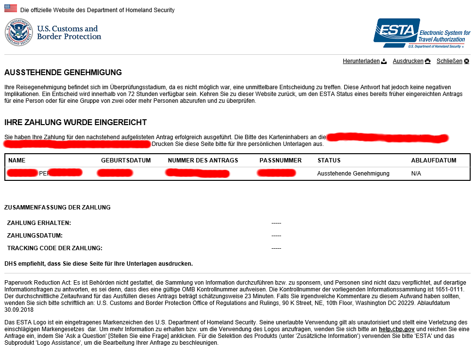 Re: ESTA Ausstehende Genehmigung
