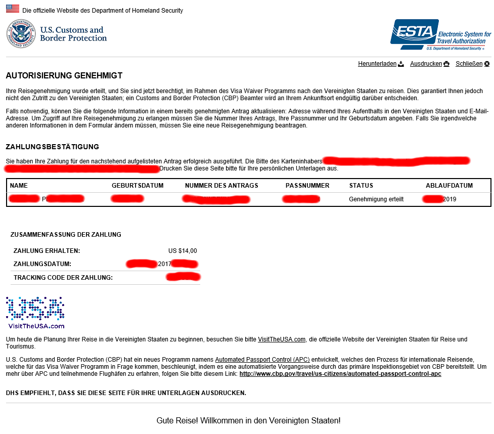 1 Stunde spaeter: Genehmigung erteilt! Hatte da schon ein Schreck bekommen. Vielleicht hat sich auch nur die Zahlung etwas verzoegert und das war der Grund?! Nun aber schnell in Vegas anrufen und bescheid sagen, das mein Host nun alles notwendige erledigen kann.