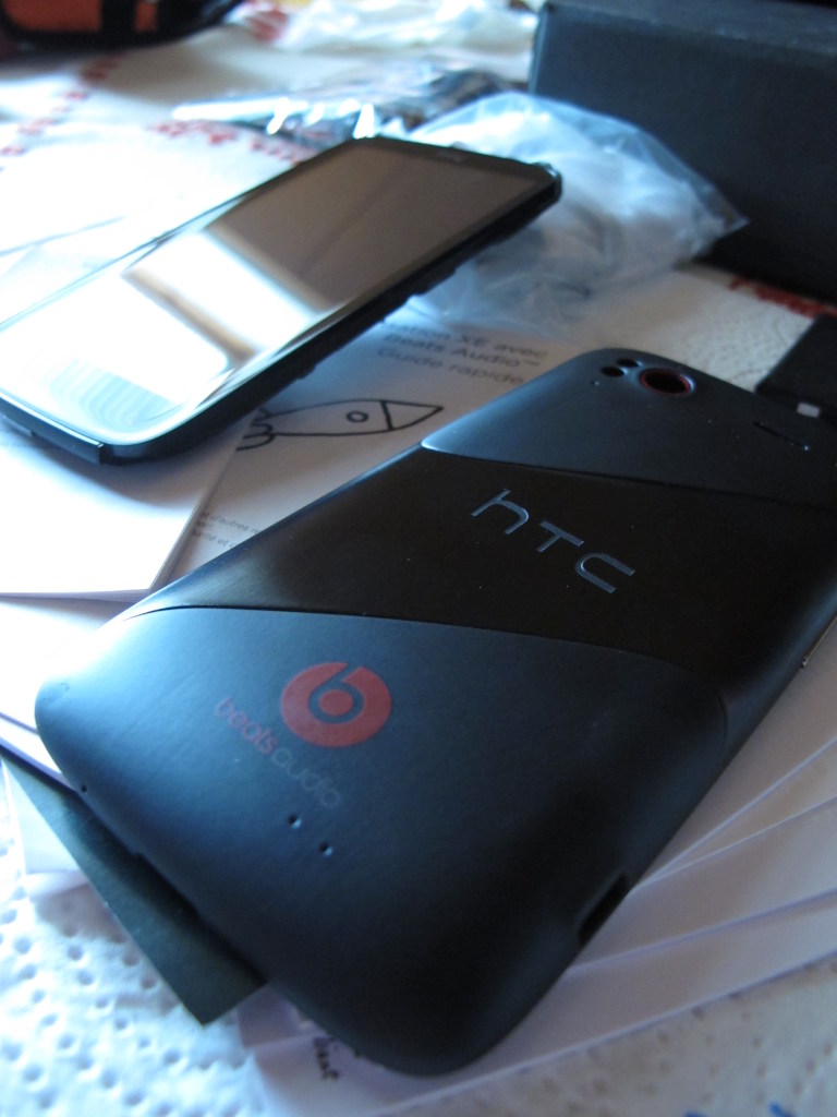 HTC SENSATION XE aber ohne die Dr.Dre Beats InEar Kopfhoerer liegen. Android 4.2.2 vom 4 August 2013 ist installiert; alles brutal schnell; optisch huebsch ( so man das rote XE-Design mag ) und wertig; leistungsstark; hochausfloesend und ohne Kratzer ( nur das fuer kleines Geld austauschbare Unibody hat oben rechts eine kleine Macke im schwarzen Alu. Wer mag kann auch ein Nagelneues Sensation Unibody bekommen ) im Gehaeuse; Zubehoer oder dem Touchscreen. Vom Zustand her also fast wie frisch aus der Fabrik. Funktioniert natuerlich auch einwandfrei...