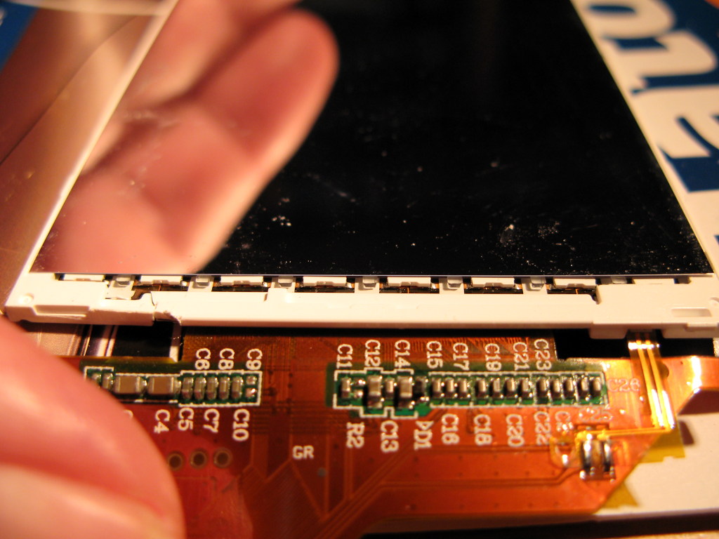 habe mich gestern im Rahmen meines HD2 Outdoor Projektes welches ich mir zu einem Transflektiven LCD fuer Outdoor-Einsaetze umruesten moechte, wieder etwas experimentiert und nebenbei herausgefunden wie bei einigen HD2 diese haessichen Flecken im LCD entstehen ( "Jugend forscht" sozusagen ).