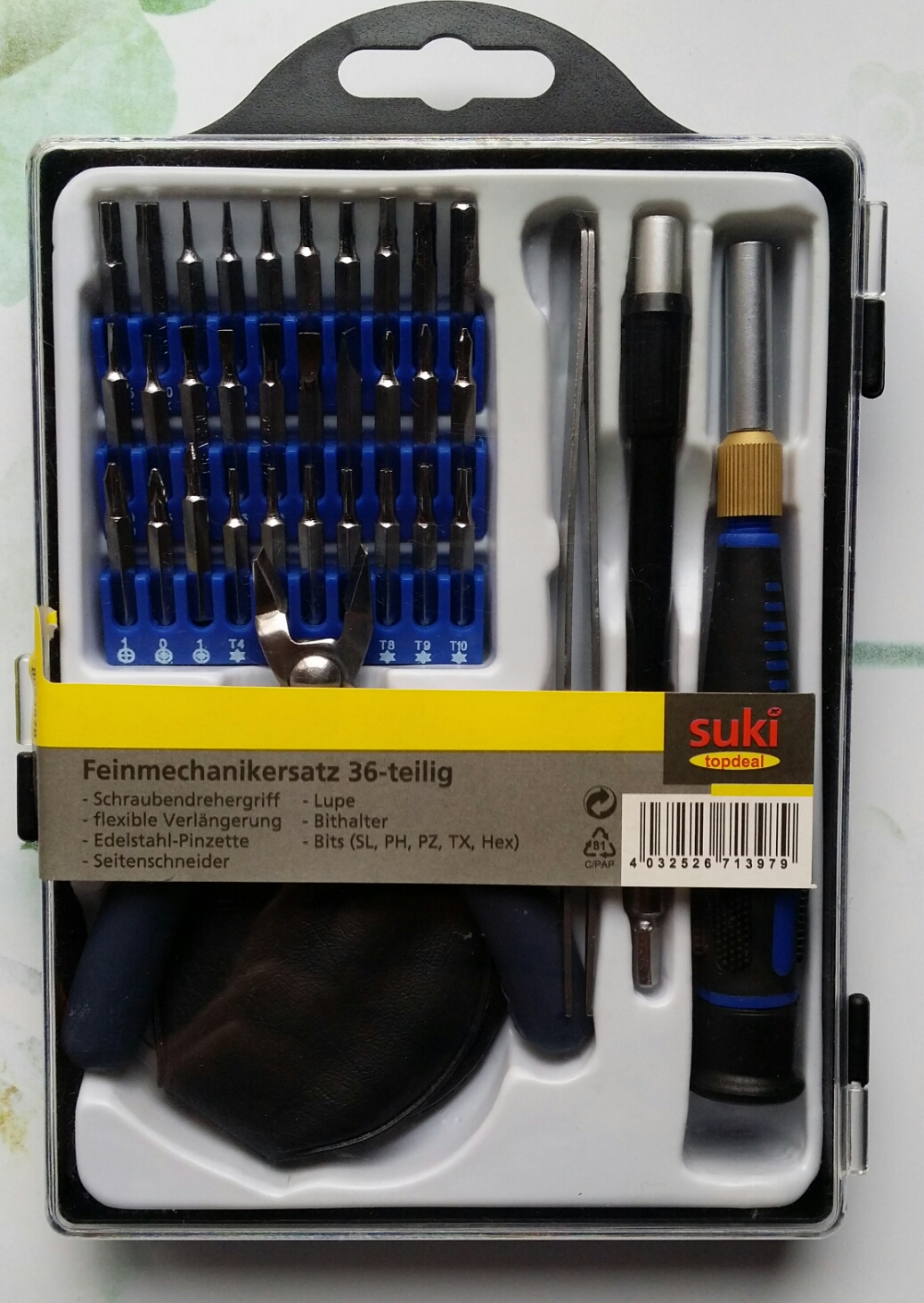 Hab den koffer schon lange leer.aber nix mehr kleine zange.die war zum falten.richtig schoen klein verdammy.werbegeschenk.