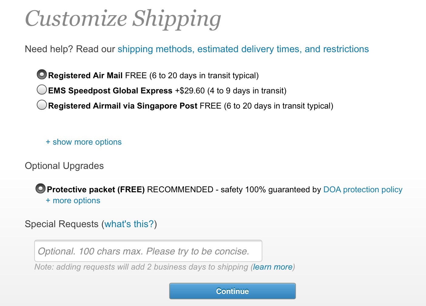 Die Lagergebühr wird erst ab dem 10. Tag der Lagerung fällig! Bei Fasttech kann man auch selbst wählen, mit welchem Versandunternehmen versendet werden soll (sofern es über 20$ ist)! Einfach auf "Show more Options" klicken beim Bestellvorgang ;)