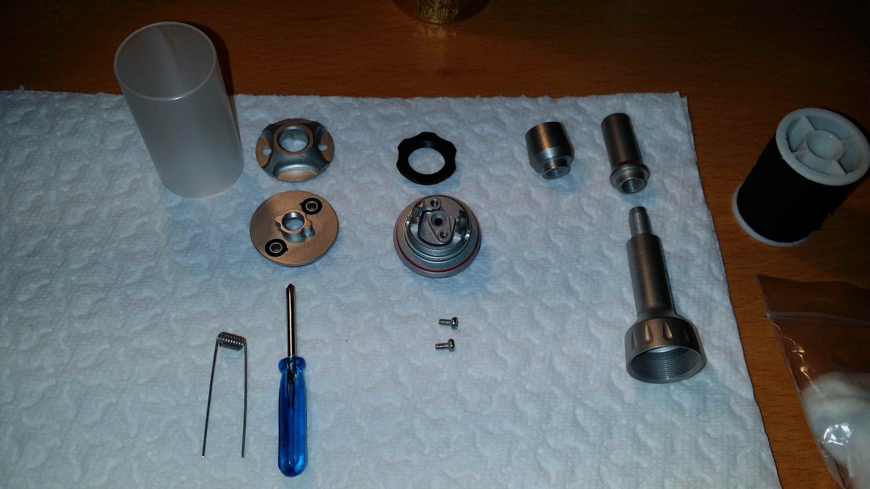 zum Lieferumfang gehören, der blaue Schraubendreher,2 fertig-wicklungen aus 0,45er kanth.9 windungen 2mm durchmesser.ich werde mal eine verbauen,aber ob das mein Setting ist wage ich zu bezweifeln.ich hab die Wicklung mal am ohm-meter gehalten und kam auf 0,7 ohm.