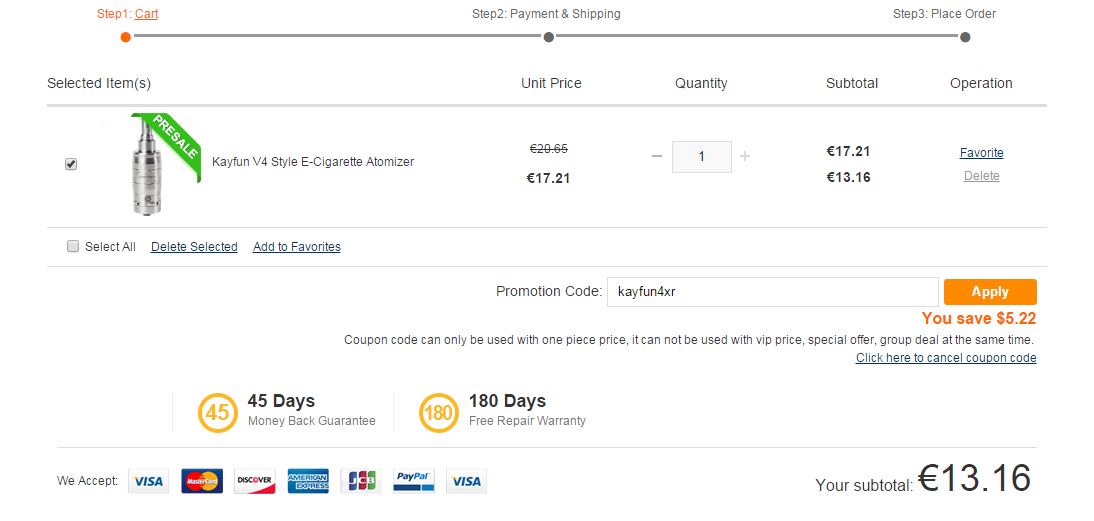 V4 steht bei 17,21 Euro und mit dank dem code...."kayfun4xr" runter auf 13,16 Euro.