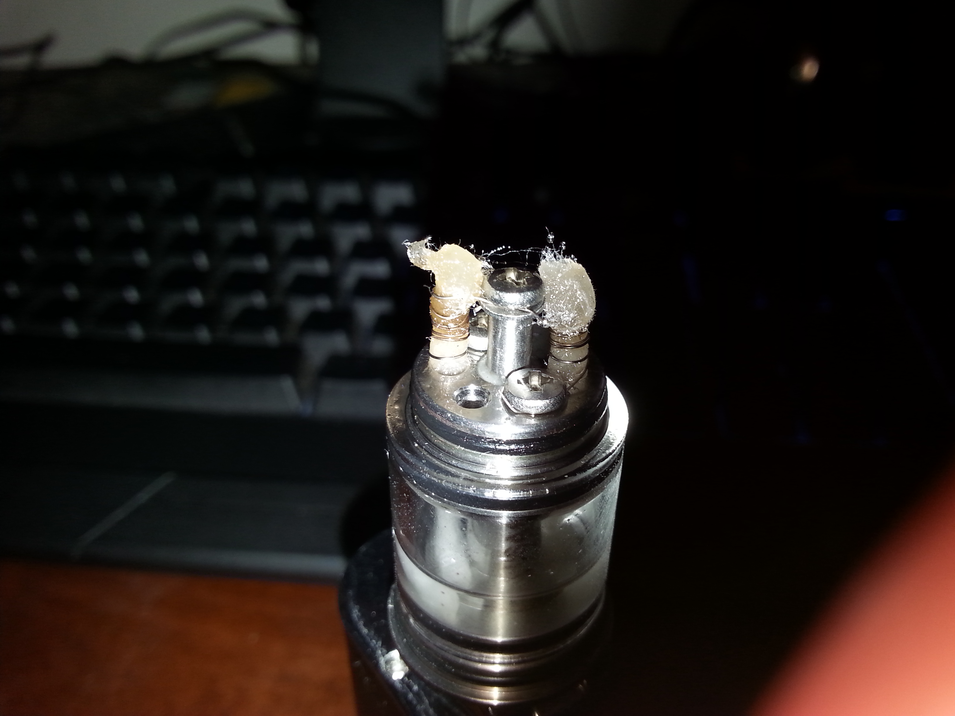 Scheint doch gut Liquid zu ziehen....Ich habe den Kraken immer mit einer U-Wick gewickelt also eine lange Wattewurst die durchgehend durch beide Coils läuft, also über dir Schraube hinweg.
