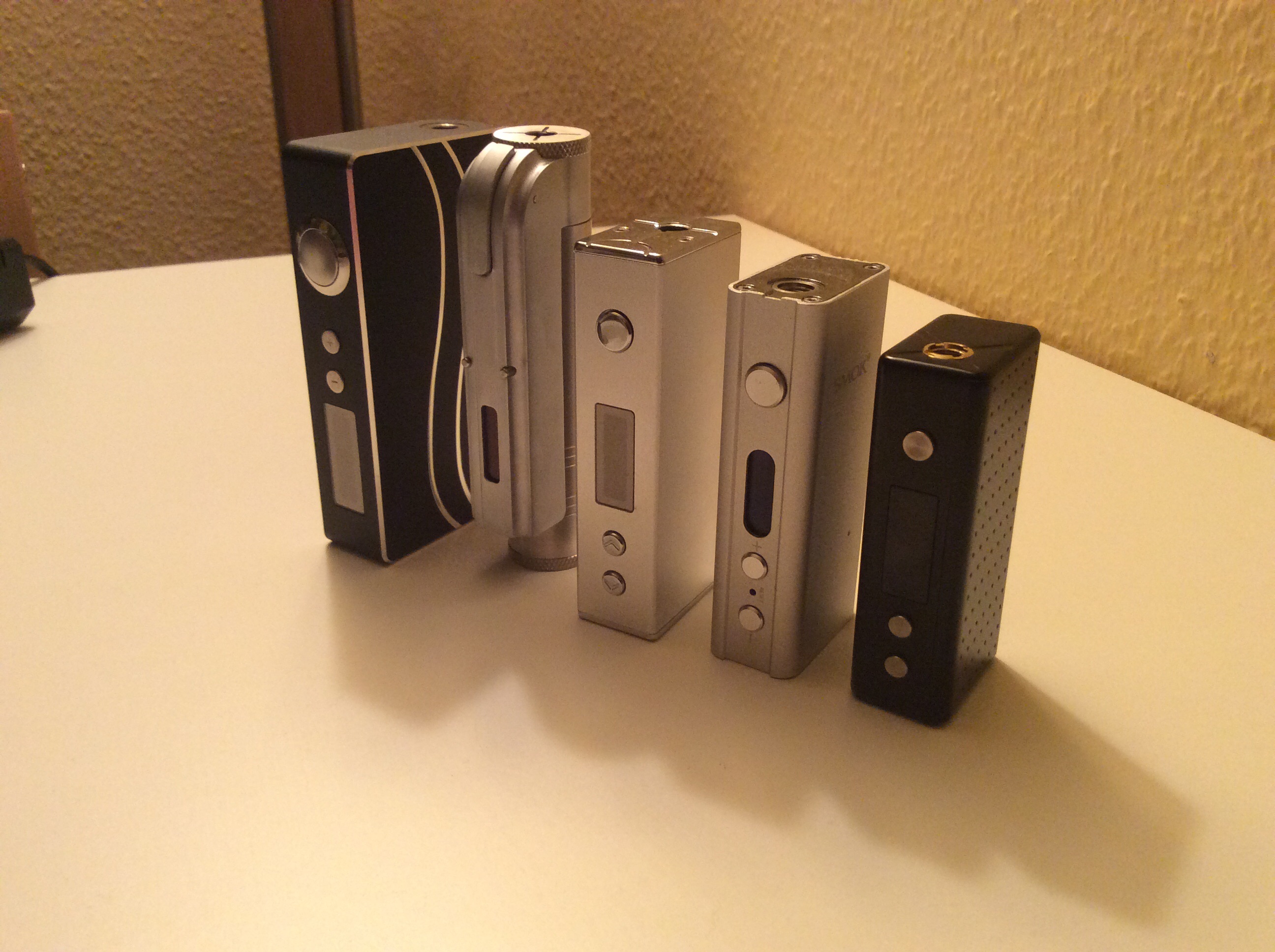 ja ist ne schoene sammlung, ich hab auch einige boxen aber derzeit nutze ich nur meine vamo v2 und den tesla vw, mein mann mag seine cloupor mini, die unikorn und den smowell 50, die hat er grad am laufen und einen tesla vw(15 watt. die andern sind alle in der kiste verstaut. ich warte grade auf den invader mini in gruen- ist noch auf processing bei gb-der spezialdraht fuer temperatur liegt schon bereit und wartet auf den invader
