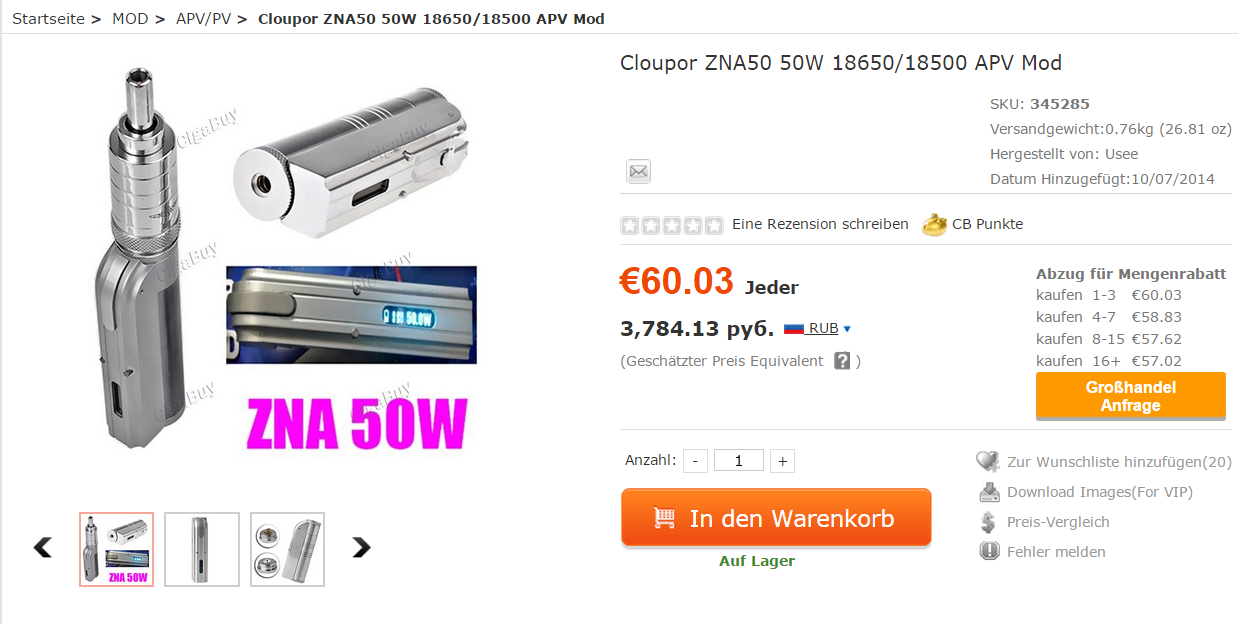 Da der Freund von mir den ZNA 50 auch da bestellt hat und vor einigen Tagen bekommen hat durfte ich mir den schonmal anschauen und mit meinen Kraken Verdampfer etwas testen,liegt schon sehr gut in der Hand und macht einen sehr wertigen Eindruck (soweit ich das als Anfänger beurteilen kann).