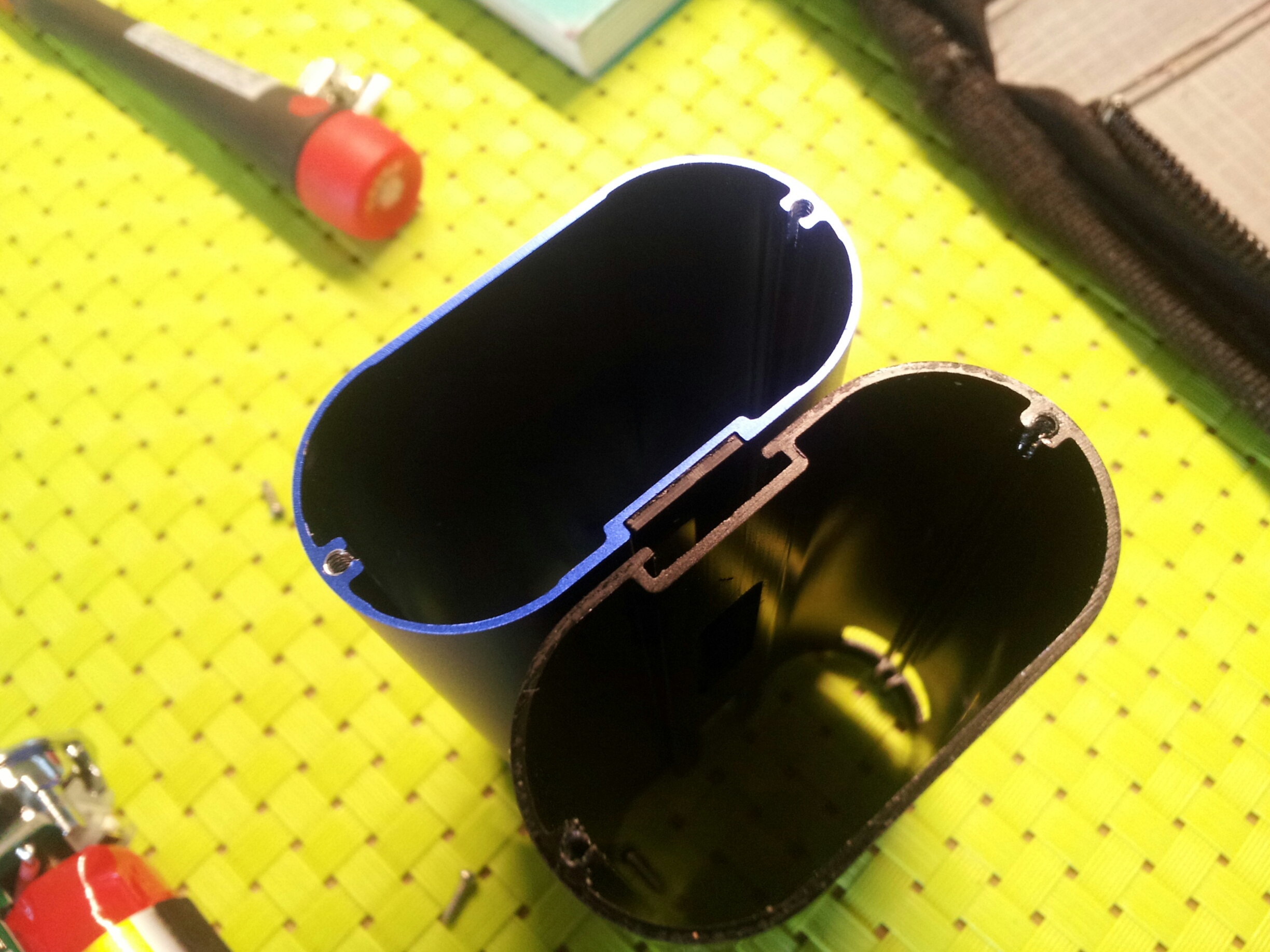 Die hauptsächlichen Unterschiede die ich ausmachen konnte liegen beim Gehäuse. Beim Original ist die Außenwandung ca. 1,2mm dick und beim anderen ca. 0,8mm. Also ist das Aluminium dünner (schwer zu sehen auf dem Bild).