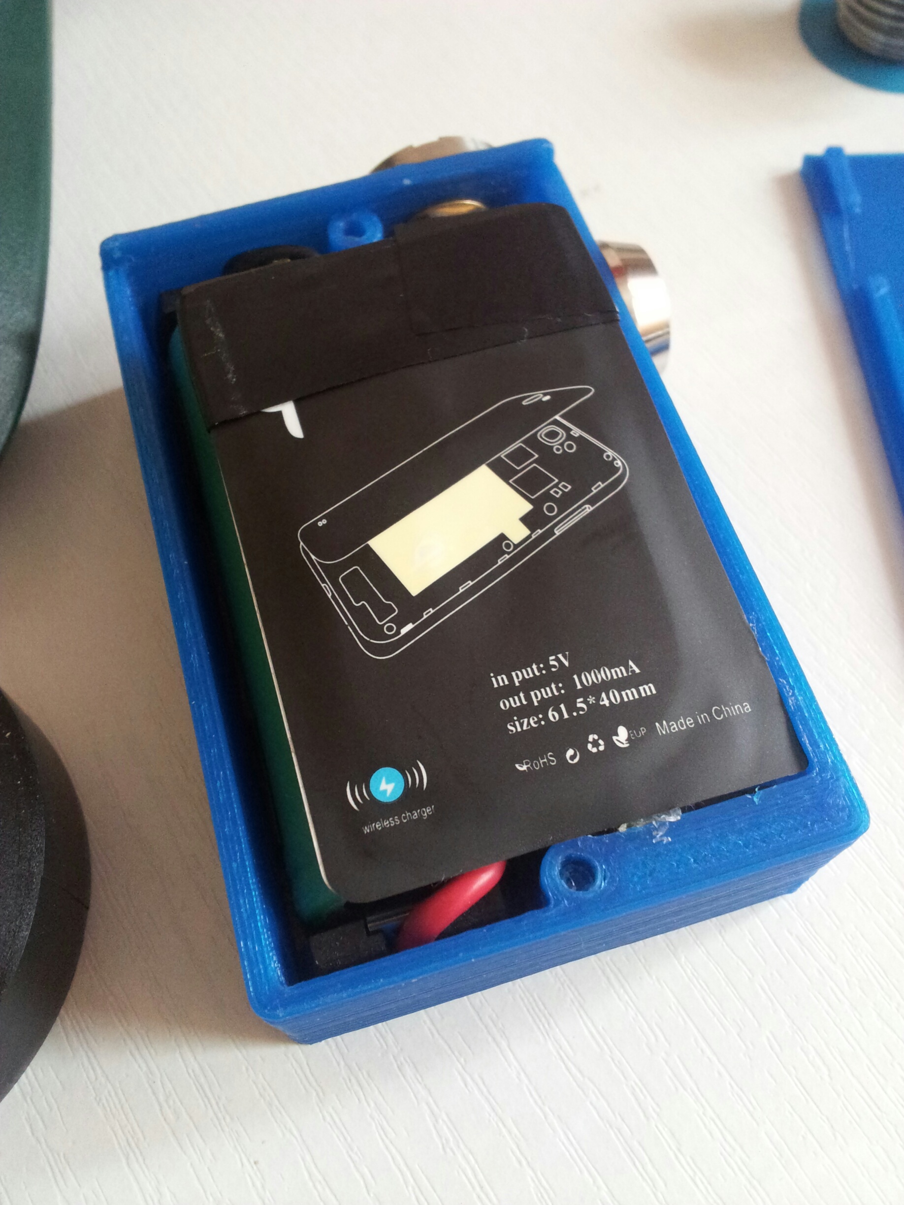 vorläufige Test Einbaulage,dabei drauf achten das die Empfangsspule richtig rum liegt,also der Isolator (Gummiplatte) nach unten zum Akku hin.