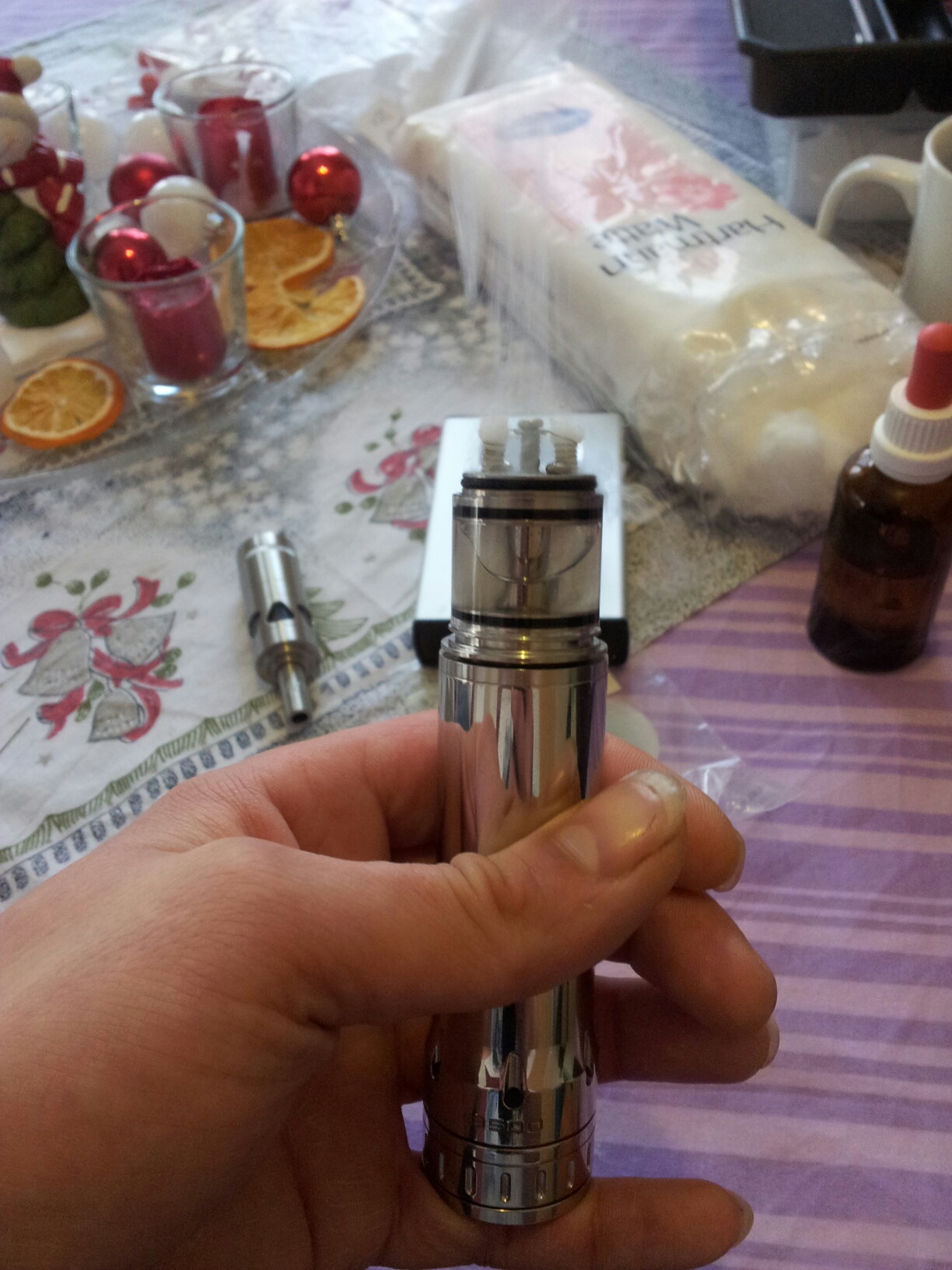 Jetzt werde ich noch schnell eine 2mm Microcoil bei 1,4Ohm in Watte betten und den 2.Weihnachtstag mal ordentlich zudampfen.