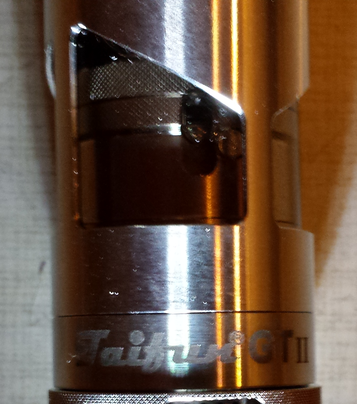 Ich habe fast keine Zug-geräusche (naja zumindest kein Pfeifen) ...das ist mir als erstes Positiv aufgefallen und ich habe auch alle Settings getestet ...das liegt bei deinem bestimmt an der schiefen Base. Die Qualität ist bei meinem auch nicht besonders schlecht ...nur eben nicht ganz so gut wie beim Perle-GT was sich durch etwas rauere Gewinde und eine nicht so perfekte Rändelung bemerkbar macht. Die O-Ringe sind bei meinem auch alle I.O. ...nichts ist zu stramm oder zu locker. Der 510er ist auch trocken... das Gerät hat noch keinen Tropfen Liquid verloren, außer blubbern vom Kondenswasser zwischen Drip Tip und Topcap ...ich muss da einmal pro Tankfüllung auswischen (das ist ja eigentlich normal). Ich warte auch auf eine noch bessere Version (eine die Perfekt ist) vom GT2. Heute habe ich mir den Scarabeus Clone bei Ft bestellt...das wird ne schicke Kombi