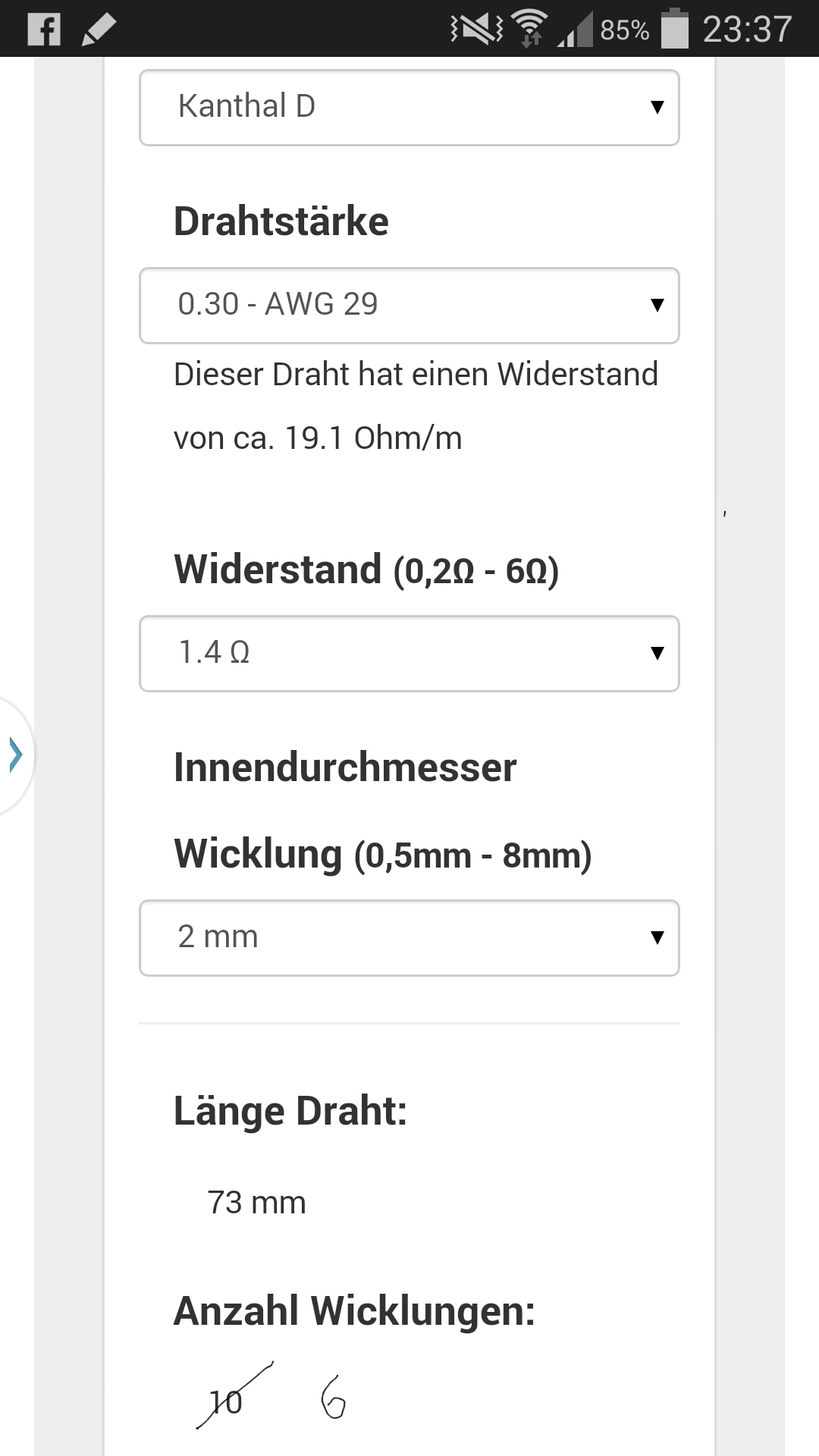 Ja ich benutze diesen Rechner als App und nur dann wenn ich eine neue Drahtstärke nehme, ziehe 2 Windungen ab und bin dann ca auf der Ohmzahl auf die ich kommen will.R4nd0m hat geschrieben:Wenn das immer so ist kann man ja die 0.3 Ohm als Messfehler immer hinzuaddieren, dann passt das ja wiederdanielhillebrand hat geschrieben: Naja, also bei mir hat die Wicklung immer ca 0.3 ohm mehr gehabt als der Rechner anzeigte.