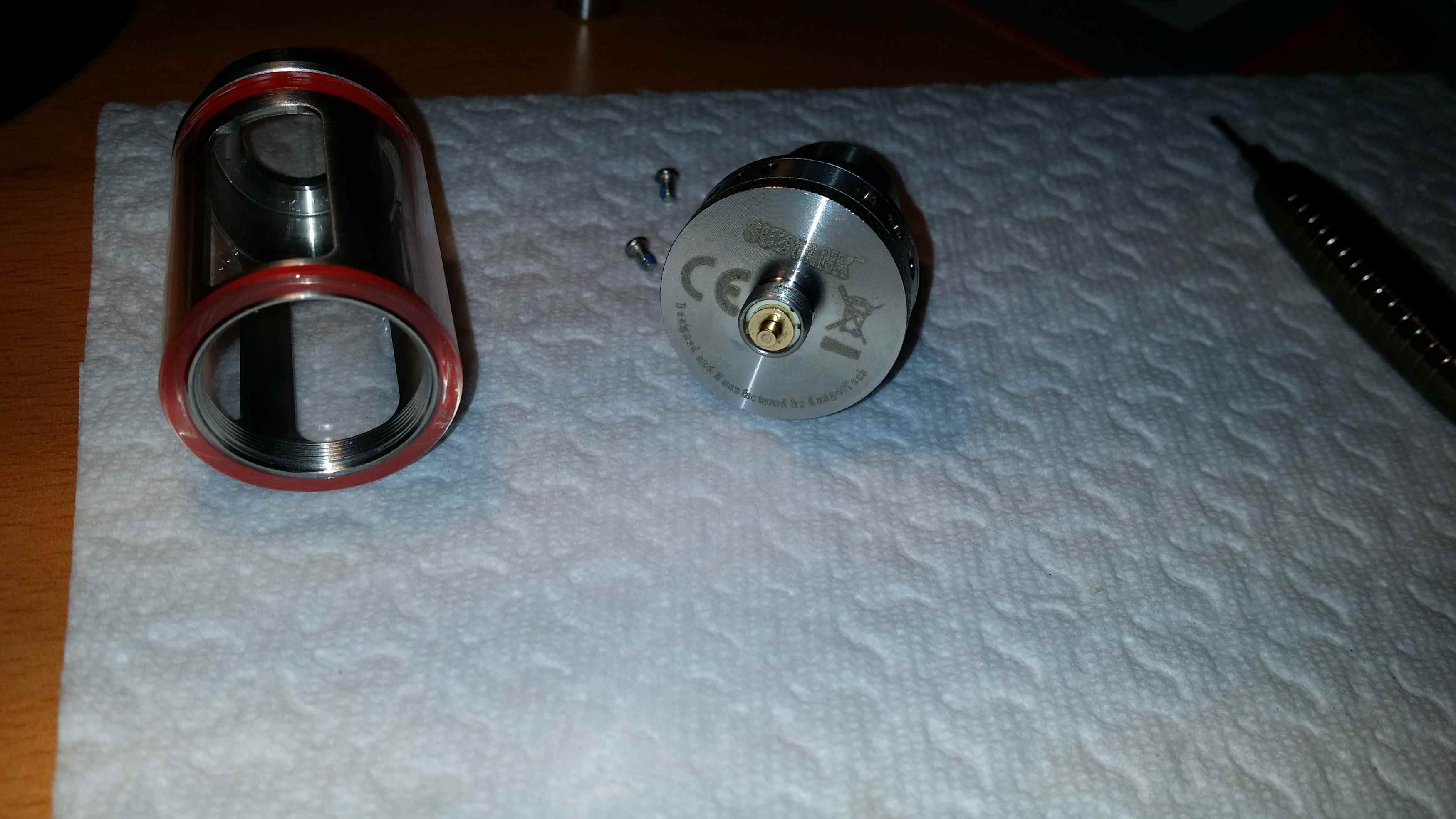 bym befüllen wird das tankgehäuse auf dem kopf gedreht,so wie bym taifun gt.und auch nur so hoch befüllt.das heisst das in der umgebauten Version weniger liquid rein passt,weil der Kamin etwas kürzer ist.aber auch das ist kein Problem.