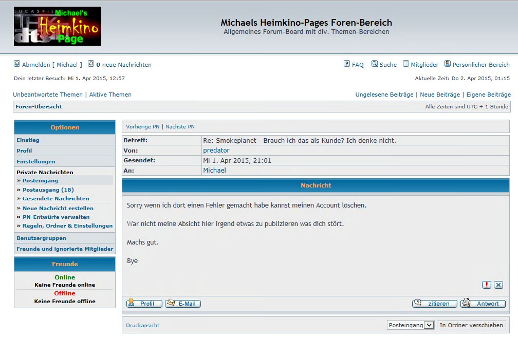 Smokeplanet-Predator ist somit auf eigenen Wunsch Forums-Geschichte