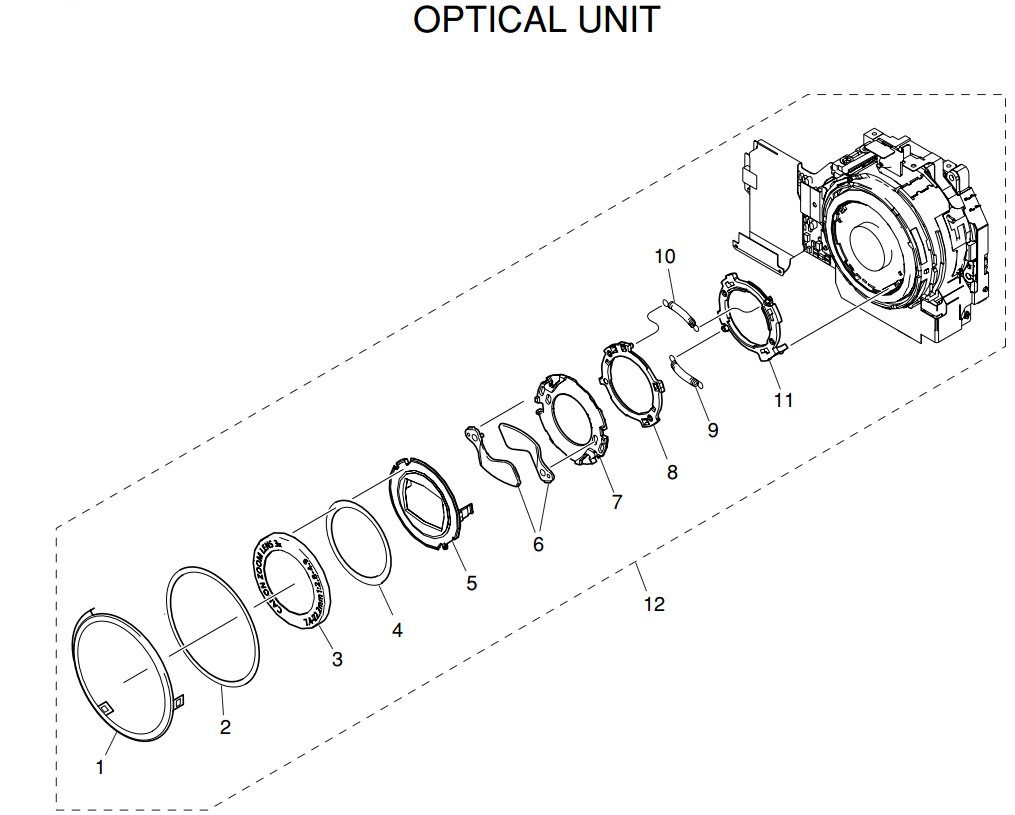 Besteht alles nur aus der Abdeckung ( vorne die alles zusammen haelt ) und unter dieser sitzen 2 Schlitzlamellen in einer Nut welche mittels Federn beim ausfahren des Objektivs geoeffnet werden. Im geschlossenen Zustand halten die Federn die Lamellen im Kurs. In meinem Fall sass wohl ein Sandkorn in der Nut in der die Lamellen gefuehrt werden...