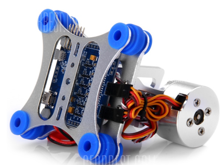 Wenn man natuerlich auf das Gewicht achten muss fuehrt kein Weg an einem Kunststoff-Gimbal vorbei und von diesen Modellen gibt es nicht viel bezahlbares. Das Walkera G-2D fuer 71 Euro (aus der Bucht und 2 Tagen Lieferzeit aus Hamburg) wiegt komplett exakt 120,1 Gramm ( habe das eben extra nochmal nachgemessen ) und funktioniert auch ganz prima. Allerdings sind die Motoren extrem klein und Schwach sodass man genau auf die Ballance achten muss. D.h. hier muss man ggf. ein bisschen mehr Konfigurations-Aufwand treiben bis alles so funktioniert wie man es sich wuenscht ( das geht ohne Computer direkt am Gimbal mittels FN Taste und den Potis ).