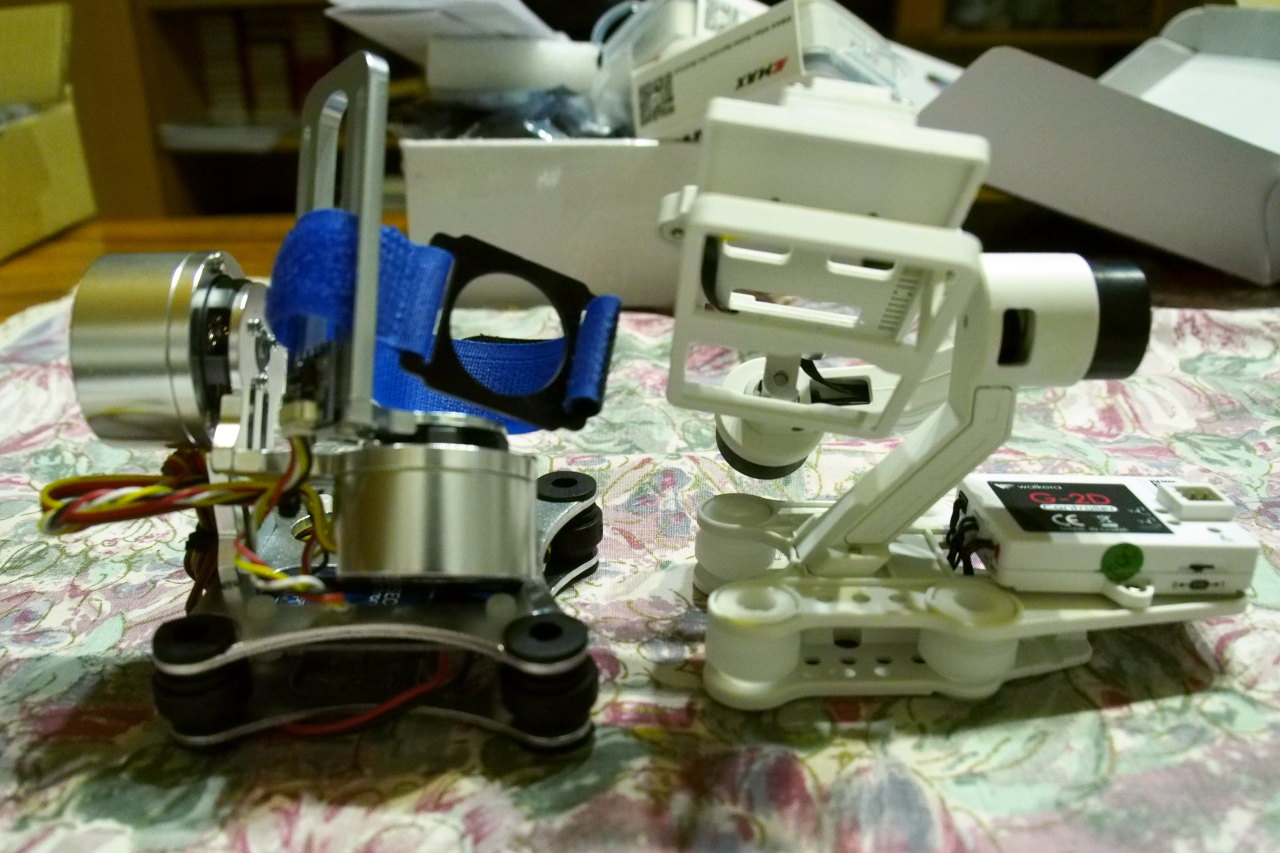 Funktionieren tun beide aber ganz ausgezeichnet. Die Wahl haengt also von der Flug-Plattform ab an die das Gimbal letztendlich angeschraubt werden soll. Oder dem was man letztendlich damit vorhaben sollte. Das 40 Euro Teil soll bei mir an ein SteadyCam Griff (Wischmob-Griff oder nur ein Stueck rundes Holz) dran und wird mittels 11,1 3S LiPo befeuert und der mittels LiPo Warners geschuetzt. Geschwenkt wird mittels 1 Euro Server-Tester und dessen Poti. Also exakt das was die 300 Euro Eumel auch machen. Nur mein System kostet in Summe fertig 50 Euro ( inkl. Gimbal ). Wenn Du etwas leichtes brauchst, fuehrt derzeit kein Weg an der Kunststoff-Version des Walkera-Gimbal G-2D vorbei. Etwas leichteres wirst Du nicht finden und preislich geht das Teil mit 68 Euro in Deutschland auch absolut in Ordung und ist fast schon ein Pflichtkauf.