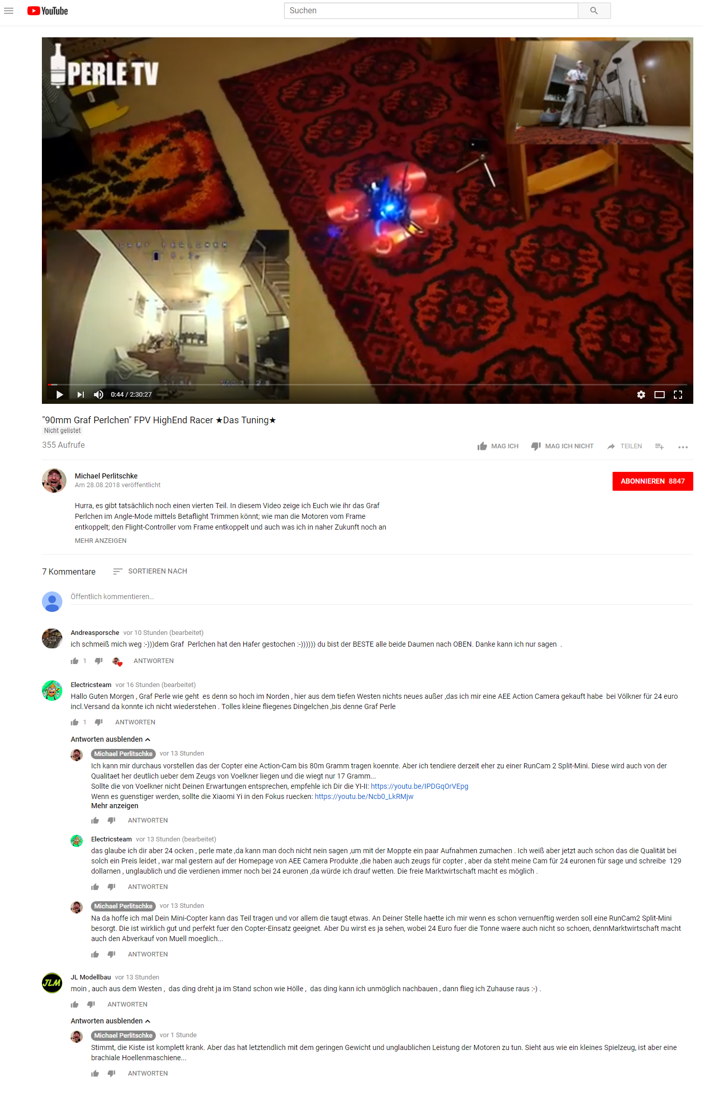 Da YouTube beim Video-Upload Bloedsinn fabriziert hat und nur max.360p als Auflösung bereitstellen konnte, habe ich das Video nach einigen Stunden Offline genommen und ein ReUpload durchgefuehrt. Da aber schon Kommentare unter dem Video vorhanden waren, habe ich diese vor dem entfernen des Videos als Screenshot gesichert und stelle diese hier als Backup ergaenzend Online: