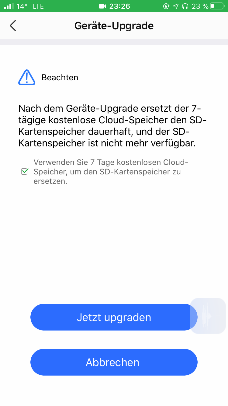 Also noch fetter kann man nicht vor dem Update vom Hersteller aus warnen. Das eine Coud Geld kostet und das ESCAM mit 15 Euro (pro Jahr!!!) Geld dran verdient ist quasi ausgeschlossen. Man muss sich also neuerdings nur entscheiden, die Cloud zu nutzen und pro Monat 1 Euro Schmerzens/Stromgeld zu bezahlen oder die SD-Karte kostenlos zu nutzen...