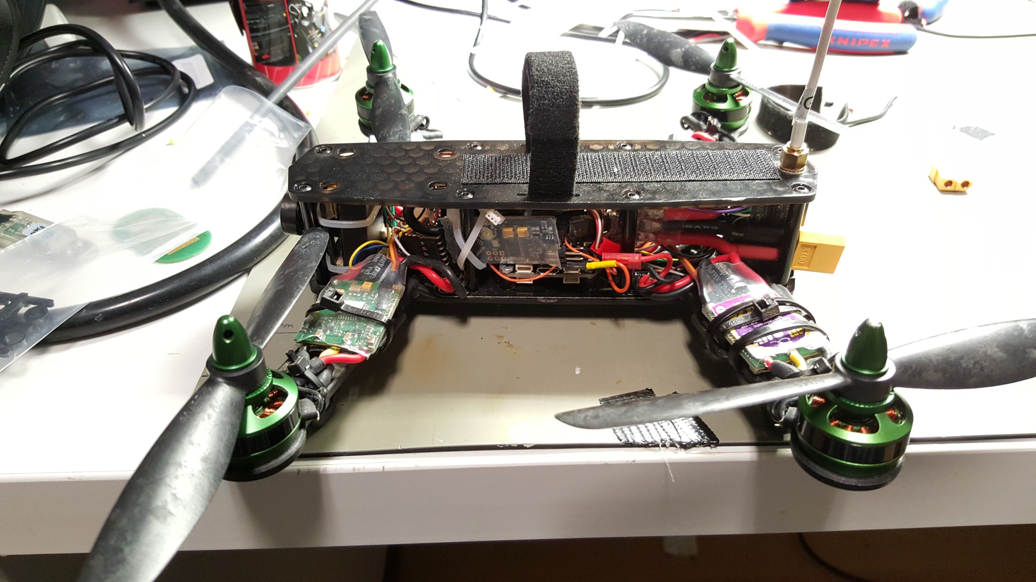 Jetzt fehlen noch die LEDs, der Buzzer, Sonar und das GPS. Eventuell noch ein L-C Filter für das FPV Zeug. Ich habe leichte Störungen beim Gas geben. Ist nicht arg aber vorhanden.