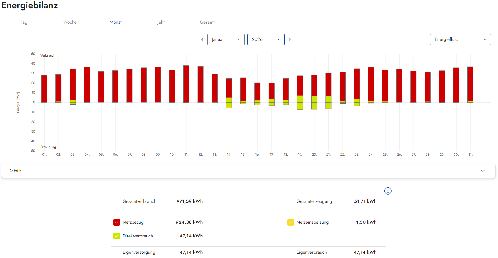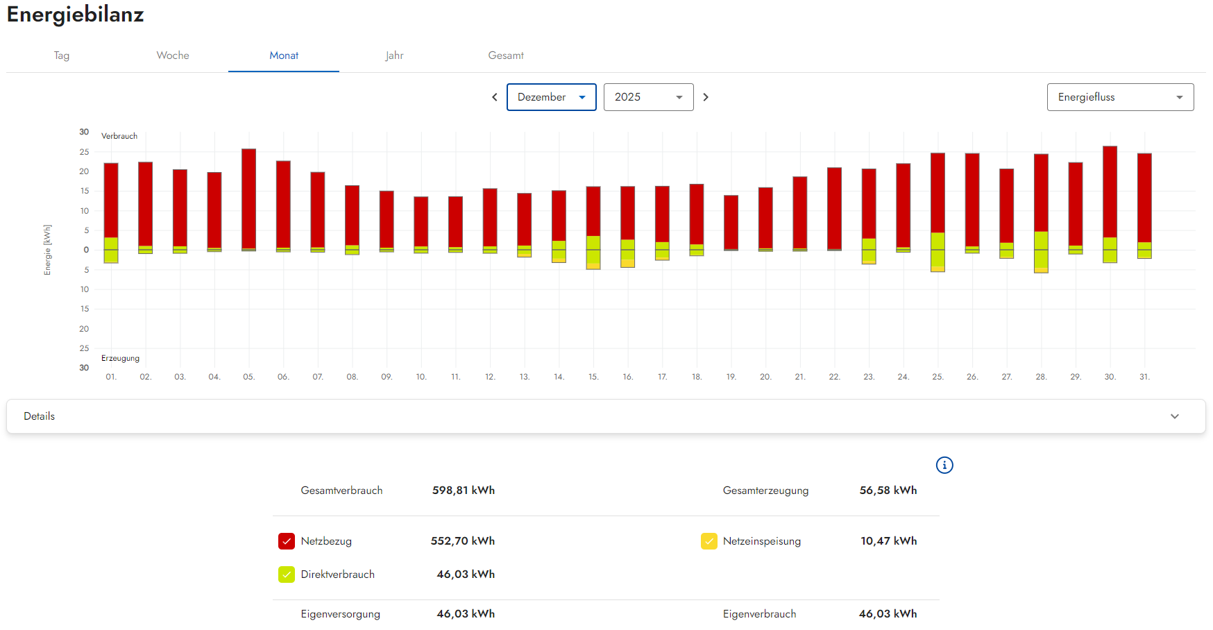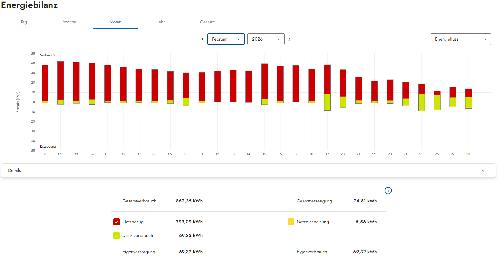 Dach-PV & BKKW (Carport PV) & Insel-Solaranlage: Dezember 2025;Januar 2026 und Februar 2026 (3 Monate)