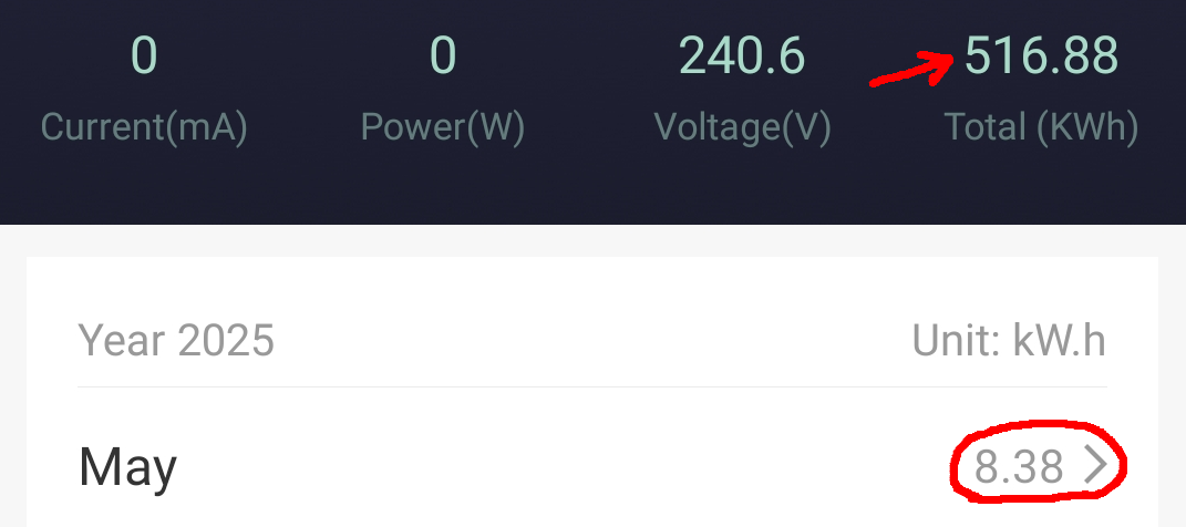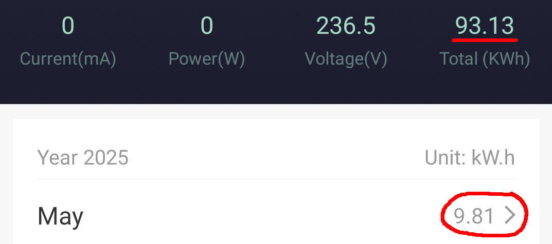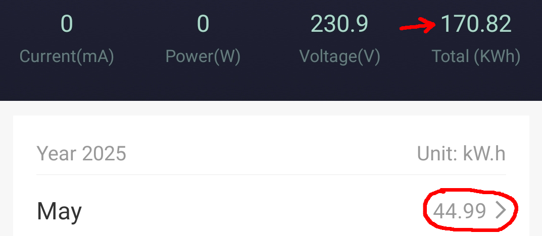 Alle 3 Anlagen laufen absolut perfekt und störungsfrei, wobei diese bei immer kürzeren Nächten immer weniger zu tun bekommen und nur einen Bruchteil Ihrer Kapazität los werden. Was haben die drei Nacheinspeisungen nun im Mai 2 mal dynamisch (Summe 5,4kwh) und Konstant (2,7kwh) in das Haus und Wärmepumpe (lief im Heizbetrieb nur 1 Nacht) reingeschaufelt? 516,88kwh; 93,13kwh + 170,82kwh (=780,83kwh) sind in Summe seit der Inbetriebnahme (April 2024 und die 2 neuen 2025) von den Systemen ins Haus gepumpt worden. Damit werde ich von Jahr zu Jahr dokumentieren wann diese Systeme (Summe ca. 1600 Euro Investitionskosten) im Geld sind. Für den Monat Mai wurden von den 3 Systemen 63,47kwh Nachts in das Haus und die Buderus Heizung (1 Nacht) geschoben. Hier die 3 Anlagen (Tuya Einspeise-Steckdosen) mit Summenangaben und Monatswerten im Monats-Detail: