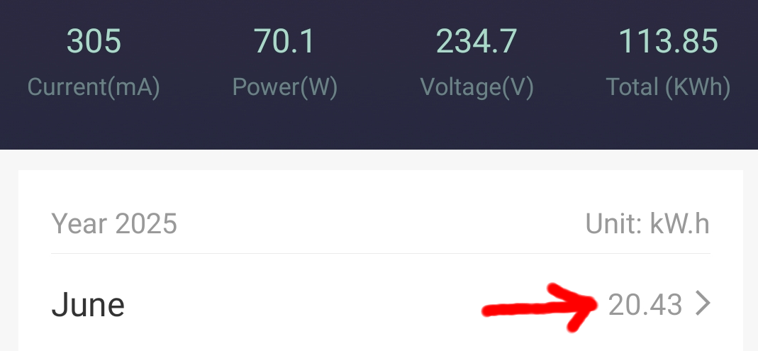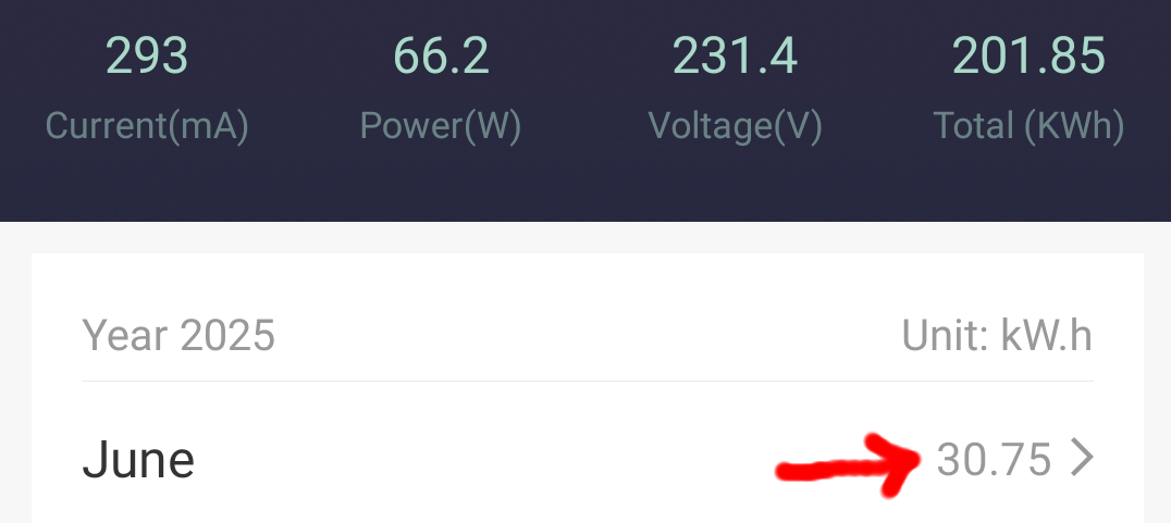 Alle 3 Anlagen laufen absolut perfekt und störungsfrei, wobei diese bei immer kürzeren Nächten immer weniger zu tun bekommen und nur einen Bruchteil Ihrer Kapazität los werden. Ende Juni habe ich aber noch etwas an den Einspeisezeiten gefeilt, denn mir mist aufgefallen das zum Sonnenuntergang und Sonnenaufgang immer noch etwas Bezug generiert wurde. Also springen die Systeme nun 50 Min. vor Sonnenuntergang an und laufen bis 120 nach Sonnenaufgang. Der Strombezug pro Tag findet immer nur zu den Übergangszeiten statt. Somit verhindere ich das etwas Strom bezugen wird bis die Carportpanel und PV-Anlage auf dem Dach genug Strom produzieren. Was haben die drei Nacheinspeisungen nun im Juni 2 mal dynamisch (Summe 5,4kwh) und Konstant (2,7kwh) in das Haus reingeschaufelt? 535,76kwh; 113,85kwh + 201,85kwh (=851,46kwh) sind in Summe seit der Inbetriebnahme (April 2024 und die 2 neuen 2025) von den Systemen ins Haus gepumpt worden. Damit werde ich von Jahr zu Jahr dokumentieren wann diese Systeme (Summe ca. 1600 Euro Investitionskosten) im Geld sind. Für den Monat Juni wurden von den 3 Systemen 69,98kwh Nachts in das Haus geschoben. Und die Nächste sind gerade im Juni sehr kurz. Hier die 3 Anlagen (Tuya Einspeise-Steckdosen) mit Summenangaben und Monatswerten im Monats-Detail: