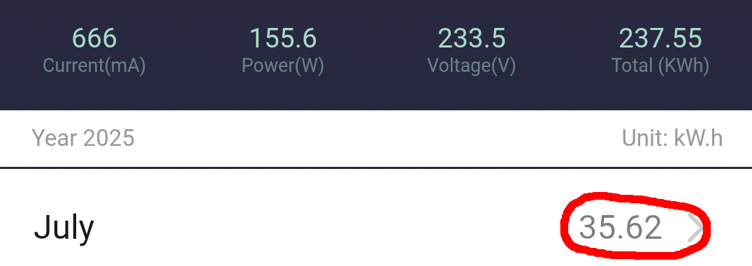 Alle 3 Anlagen liefen auch im Juli absolut perfekt und störungsfrei und das optimieren der Einspeisezeiten vom letzten Monat Juni zeigt positive Wirkung. Also springen die Systeme nun 50 Min. vor Sonnenuntergang an und laufen bis 120Min. nach Sonnenaufgang. Der Strombezug pro Tag findet immer nur zu den Übergangszeiten statt. Somit verhindere ich das etwas Strom bezugen wird bis die Carportpanel und PV-Anlage auf dem Dach genug Strom produzieren. Was haben die drei Nacheinspeisungen nun im Juli 2 Anlagen dynamisch (Summe 5,4kwh) und 1 Anlage Konstant (2,7kwh) in das Haus reingeschaufelt? 237,55kwh; 145,88kwh + 552,42kwh (=935,85kwh) sind in Summe seit der Inbetriebnahme (April 2024 und die 2 neuen 2025) von den Systemen ins Haus gepumpt worden. Damit werde ich von Jahr zu Jahr dokumentieren wann diese Systeme (Summe ca. 1600 Euro Investitionskosten) im Geld sind. Für den Monat Juli wurden von den 3 Systemen 84,21kwh Nachts in das Haus geschoben, sodass man schon jetzt bemerkt das der Bedarf Nachts im Vergleich zum Juni steigt und die Nächte ganz langsam immer etwas länger werden. Hier die 3 Anlagen (Tuya Einspeise-Steckdosen) mit Summenangaben und Monatswerten im Monats-Detail: