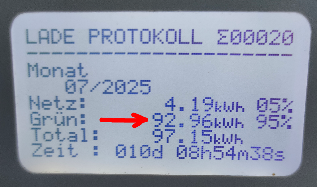 Balkon-Kraftwerk auf dem Carport: Die kleine Carport-Installation war auch diesen Juli unter erschwerten Bedinungen (Regen satt) fleissig und fische erneut einiges an Strom vom Carport-Dach. Der alte HM800 der Carport-Anlage hat bis Anfang April 2025 ca. 642,67kwh (Mitte Mai 2024) vom Carportdach gefischt. Der neue HM1500 (Installation Mitte Mai 2025) hat in diesem Juli 810,15kwh produziert. Also in Summe hat das Carport somit 1434,82kwh geliefert. Somit ist es nun möglich alle 3 Einspeise-Systeme ausschliesslich mit dem Strom vom Carport zu laden wobei diese Ladung besonders schnell erledigt ist. Dann geht pro Akku und Nacht 30-40% der Kapazität ins Haus. Und das bisschen an Energie muss dann nur noch am Folgetag wieder aufgefüllt werden. Seit Mai 2024 hat die Carport-Anlage nun schon nach nur 14 Monaten 416,38 Euro erwirtschaftet. Genial!