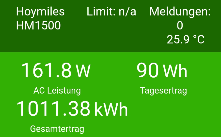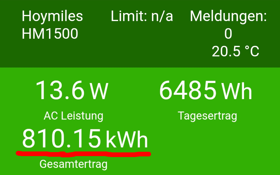 Balkon-Kraftwerk auf dem Carport: Die kleine Carport-Installation hat im Rahmen der Möglichkeiten versucht das Beste aus dem miesen November zu holen. Aber die Module bekommen kaum noch von der mittlerweile sehr tief stehenden Sonne Energie. Wenn dann 1-2 Stunden und die Verschattung gehend rasend schnell voran. Der alte HM800 der Carport-Anlage hat bis Anfang April 2025 ca. 642,67kwh (Mitte Mai 2024 installiert) vom Carportdach gefischt. Der "neue" HM1500 (Installation Mitte Mai 2025) hat in diesem November 1225,86kwh aufaddiert. Also in Summe hat das Carport somit schon 1868,53kwh geliefert. Somit ist es nicht mehr möglich alle 3 Einspeise-Systeme ausschliesslich mit dem Strom vom Carport zu laden da einfach nicht mehr genug Strom von den Modulen kommt. Seit Mai 2024 hat die Carport-Anlage nun nach nur 18 Monaten 542,25 Euro erwirtschaftet und nähert sich der vollen Armortisation. 2026 wird die komplette Installation im Geld sein! Ende November habe ich die Regenpause genutzt die verschlammten Drainage-Clips samt Modul-Ränder (die wurden schon Grün) zu reinigen. Abschliessend gab es dann auch noch ein Mob-Reinigung der vom Laub verklebten Modulflächen mit destilliertem Wasser (hat ca. 20 Minuten gedauert, da ich auf dem duennen Alu-Dach rumturnen musste). Sehen nun wieder Pickobello sauber aus, sodass die nächste Reinigung wohl erst im Sommer 2026 durchgeführt werden muss. Hier noch ein Screenshot des Hoymiles von der Carport-Anlage. Heute am 30 November schien sogar etwas die Sonne und der Ertrag ist erbärmlich. Wo sonst bis zu 11kwh produziert wurden, kommt Ende November und der Vetrschattung nur noch ein Bruchteil dessen von den Modulen: