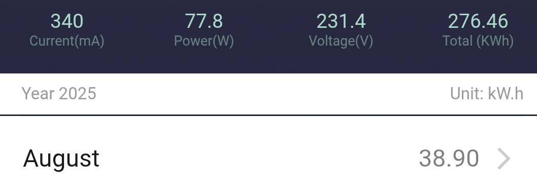 Alle 3 Anlagen liefen auch im August absolut perfekt und störungsfrei und das optimieren der Einspeisezeiten vom Juni zeigt erneut positive Wirkung. Also springen die Systeme nun 50 Min. vor Sonnenuntergang an und laufen bis 120Min. nach Sonnenaufgang durch. Was haben die drei Nacheinspeisungen nun im August fabiziert? 2 Anlagen laufen dynamisch (Summe 5,4kwh) und 1 Anlage Konstant (2,7kwh) um den Strom Nachts in das Haus reinzuschaufeln: 187,55kwh; 276,46kwh + 571,13kwh (=1035,14kwh) sind in Summe seit der Inbetriebnahme (April 2024 und die 2 neuen im Frühjahr 2025) von den Systemen Nachts ins Haus gepumpt worden. Damit werde ich von Jahr zu Jahr dokumentieren wann diese Systeme (Summe ca. 1600 Euro Investitionskosten) im Geld sind. Bei gesparten Bezugskosten von aktuell 0,2902 Cents/kwh hat die Nachteinspeisung bis heute ca. 300 Euro eingespart. Hier muss man bedenken, dass die Anlage also alle 3 Systeme erst seit April 2025 im Verbund laufen und die Übergangsmonate wo mit den Systemen der Strom zum Heizen mit der Buderus Wäremepumpe noch nicht aktiv laufen. D.h. mit diesem 3er Einspeise-Verbund werden wohl 400 Euro Einsparung realistisch sein. Das bedeutet im Umkehrschluss das sich die Anlagen in exakt 4 Jahren armortisieren. Ausgelegt sind diese auf min. 15 Jahre Betrieb! Hier sieht man gut, wie enorm wichtig es ist, auf die Kosten zu achten. Denn Speicher rechnen sich immer nur dann, wenn diese möglichst wenig kosten und auch eine passende Auslegung besitzen. Denn im Sommer langweilen sich die Systeme und im Winter werden die nicht mehr voll. Für den Monat August wurden von den 3 Systemen 99,61kwh Nachts in das Haus geschoben, sodass man schon jetzt deutlicher bemerkt das der Bedarf Nachts im Vergleich zum Juli steigt und die Nächte langsam immer etwas länger und das Haus Energiehungriger werden. Hier die 3 Anlagen (Tuya Einspeise-Steckdosen) mit Summenangaben und Monatswerten im Monats-Detail: