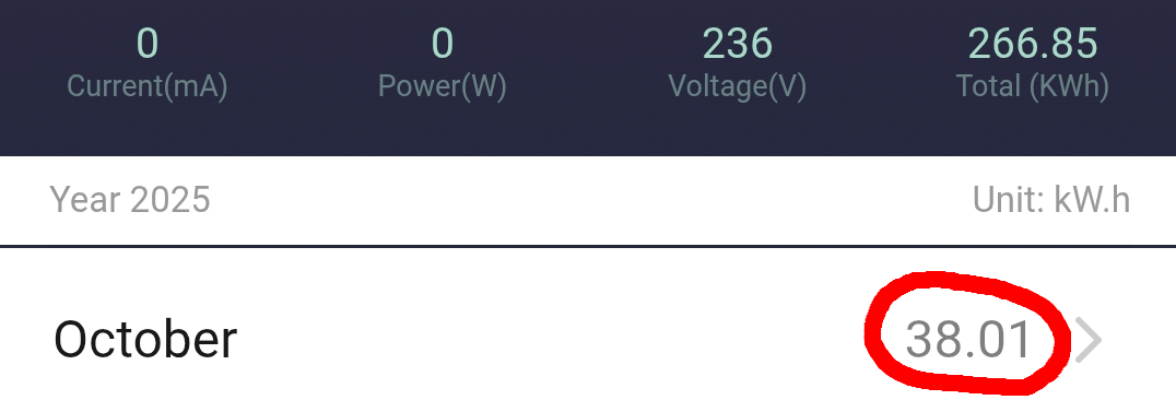 Alle 3 Anlagen liefen auch in diesem Oktober, aber wurden aufgrund des schlechten Wetters nicht immer komplett bis 100% mit PV-Überschussenergie gefüllt. Besonders das Powerqueen System bekam hin & wieder sehr wenig ab. Die Systeme springen 50 Min. vor Sonnenuntergang an und laufen bis 120Min. nach Sonnenaufgang durch, was ich im November auf 20Min. vor Sonnenuntergang und 60 Min. nach Sonnenaufgang ändern werde. Was haben die drei Nacheinspeisungen nun in diesem verregneten und bewölkten Oktober fabiziert? 2 Anlagen laufen dynamisch (Summe 5,4kwh) und 1 Anlage Konstant (2,7kwh) um den Strom Nachts in das Haus reinzuschaufeln: 266,85kwh; 348,12kwh + 620kwh (=1234,97kwh) sind in Summe seit der Inbetriebnahme (April 2024 und die 2 neuen im Frühjahr 2025) von den Systemen Nachts ins Haus gepumpt worden. Damit werde ich von Jahr zu Jahr dokumentieren wann diese Systeme (Summe ca. 1600 Euro Investitionskosten) im Geld sind. Bei gesparten Bezugskosten von aktuell 0,2902 Cents/kwh hat die Nachteinspeisung bis heute ca. 358,39 Euro Strombezugskosten eingespart. Hier muss man bedenken, dass die Anlage also alle 3 Systeme erst seit April 2025 im Verbund laufen und die Übergangsmonate wo mit den Systemen der Strom zum Heizen mit der Buderus Wäremepumpe. Erst ab diesen Monat wird die Buderus Wäermepumpe von den Akku-Systemen mit Strom versorgt, da der gesamte Oktober sehr kalt war und 50-60% im Monat geheizt werden musste . D.h. mit diesem 3er Einspeise-Verbund werden wohl >400 Euro Einsparung pro Jahr realistisch sein. Das bedeutet im Umkehrschluss das sich die Anlagen in exakt 4-5 Jahren armortisieren. Ausgelegt sind diese aufgrund der hohen Zyklenfestigkeit auf min. 15 Jahre Betrieb, eher noch länger! Hier sieht man gut, wie enorm wichtig es ist, auf die Anschaffungskosten zu achten. Denn Speicher rechnen sich immer nur dann, wenn diese möglichst wenig kosten und auch eine passende Auslegung und Effizienz (geringe Lade/Entladeverluste) besitzen. Denn im Sommer langweilen sich die Systeme und zwischen Oktober und März werden die nicht immer voll. Für den Monat Oktober wurden von den 3 Systemen 82,52kwh Nachts in das Haus geschoben, sodass man schon jetzt immer deutlicher bemerkt, dass der Bedarf Nachts steigt aber die Akkus Tagsüber besonders bei schlecbhten Wetter nicht mehr voll werden. Hier die 3 Anlagen (Tuya Einspeise-Steckdosen) mit Summenangaben und Monatswerten im Monats-Detail: