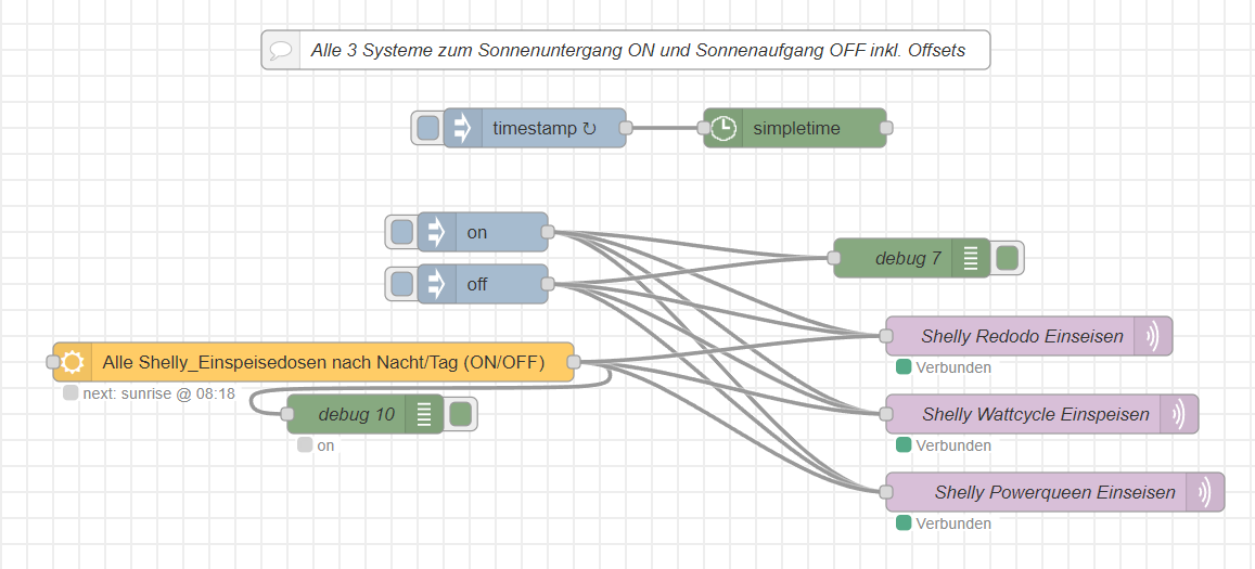 Hier nun noch die Node-Red Steuerung der 3 Einspeise-Steckdosen: