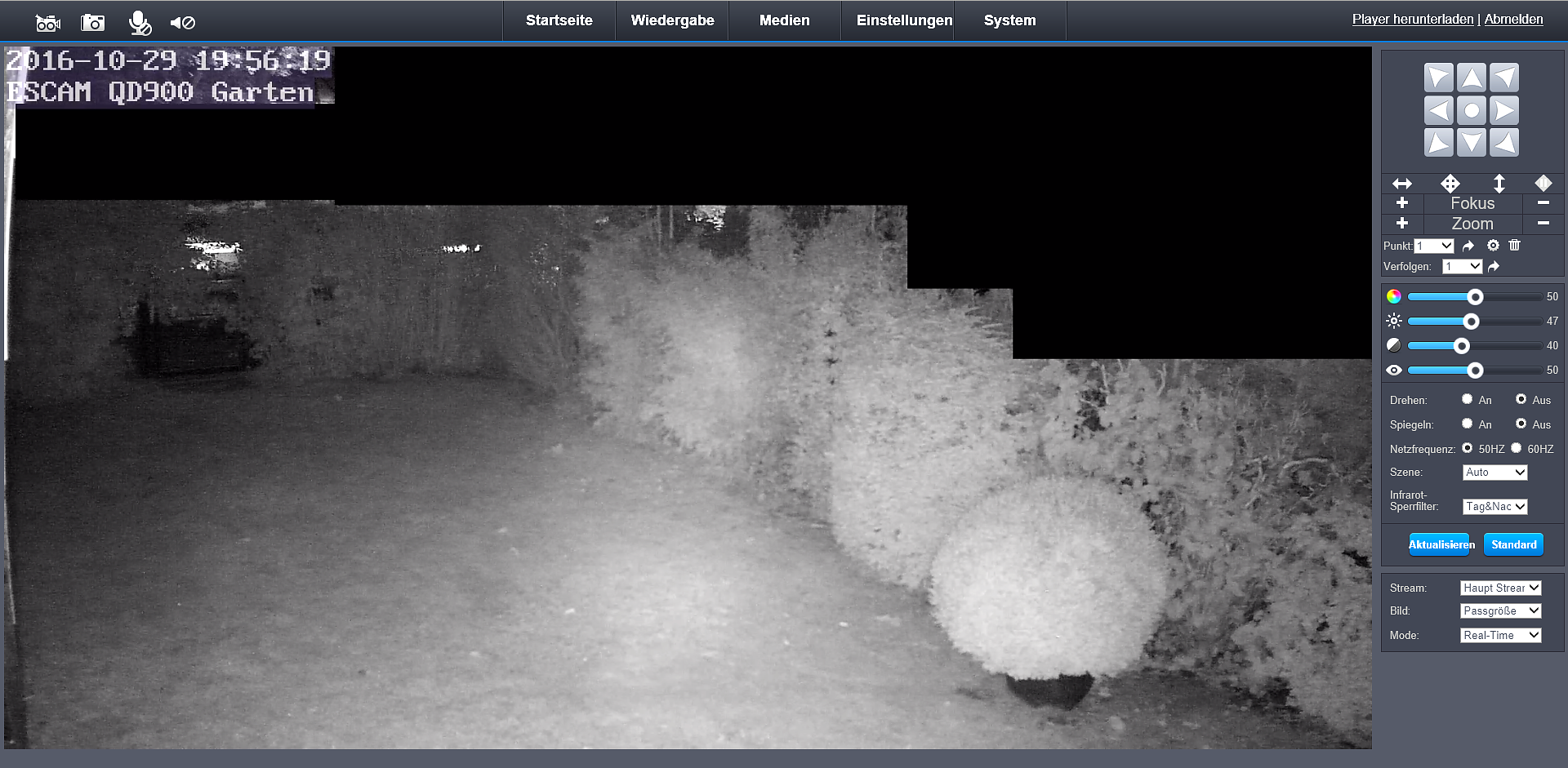 Aproproo Kamera, heute hat mich eine weitere ESCAM QD900 erreicht, allerdings fuer 53 Euro bei Gearbest im Angebot bestellt. Die defekte von Banggood liegt hier auf Halde, da Banggood mir ein neues IR-Unit ( also das Zeugs was die Nachsicht aktiviert und bei der Kamera zu einem FREEZE fuehrt ) zuschicken wird welche ich dann einbauen werde. Ich hoffe damit erledigt sich das Problem. Da die Zeit draengt, hatte ich vor 14 Tagen bei Gearbest im Sonderangebot noch eine Kamera bestellt und diese werde ich bis Freitag auf Funktion testen und wenn die in Ordung ist am Wochenende installieren und an der Solar-Anlage in Betrieb nehmen. Damit sinkt dann auch der derzeitige Testverbrauch, da Tagsueber nur 2,1 Watt gezogen werden und Nachts 5.7 Watt. Sollte das weiterhin so ausgezeichnet funktionieren werde ich dann auch die derzeit defekt QD900 von Banggood noch anschliessen und dann 2 Kameras laufen lassen um keine toten Winkel zu haben und alles ueberwachen zu koennen. Denn der Strom ist vorhanden und kommt kostenlos vom Himmel.