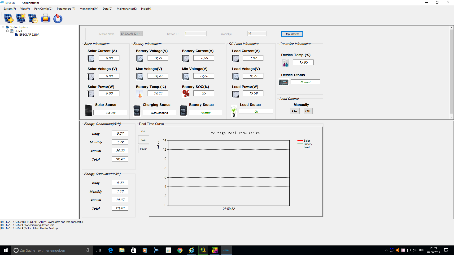 Tag 232 (Donnerstag, der 08.06.2017)- Der heutige Donnerstag war so beschissen wie der Tag gestern. Allerdings reichte das der Insel-Anlage aus die notwenigen 270Wh zu produzieren und die Akkus wieder bis Anchlag voll zu laden. Mehr an Infos moechte ich zu diesem schrecklichen Tag auch nicht verlieren...
