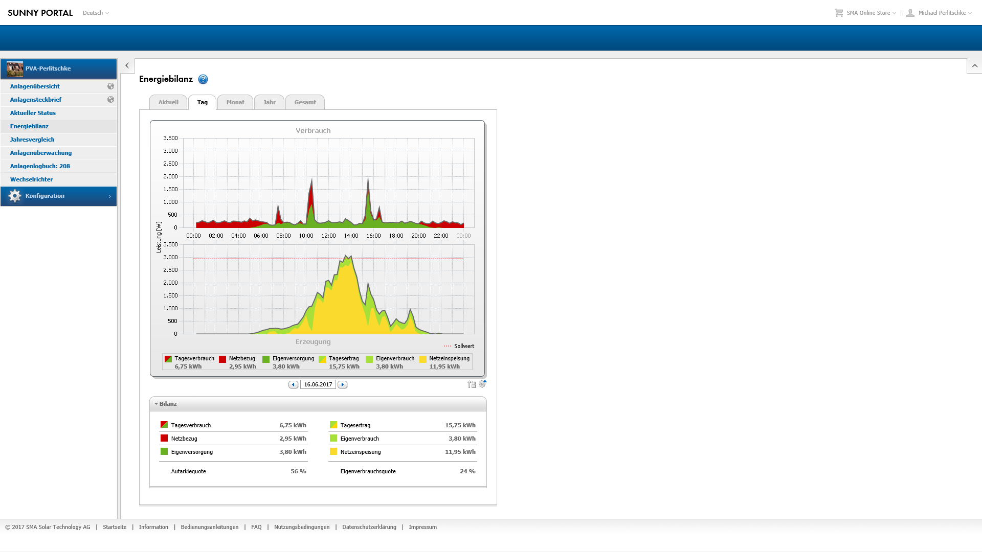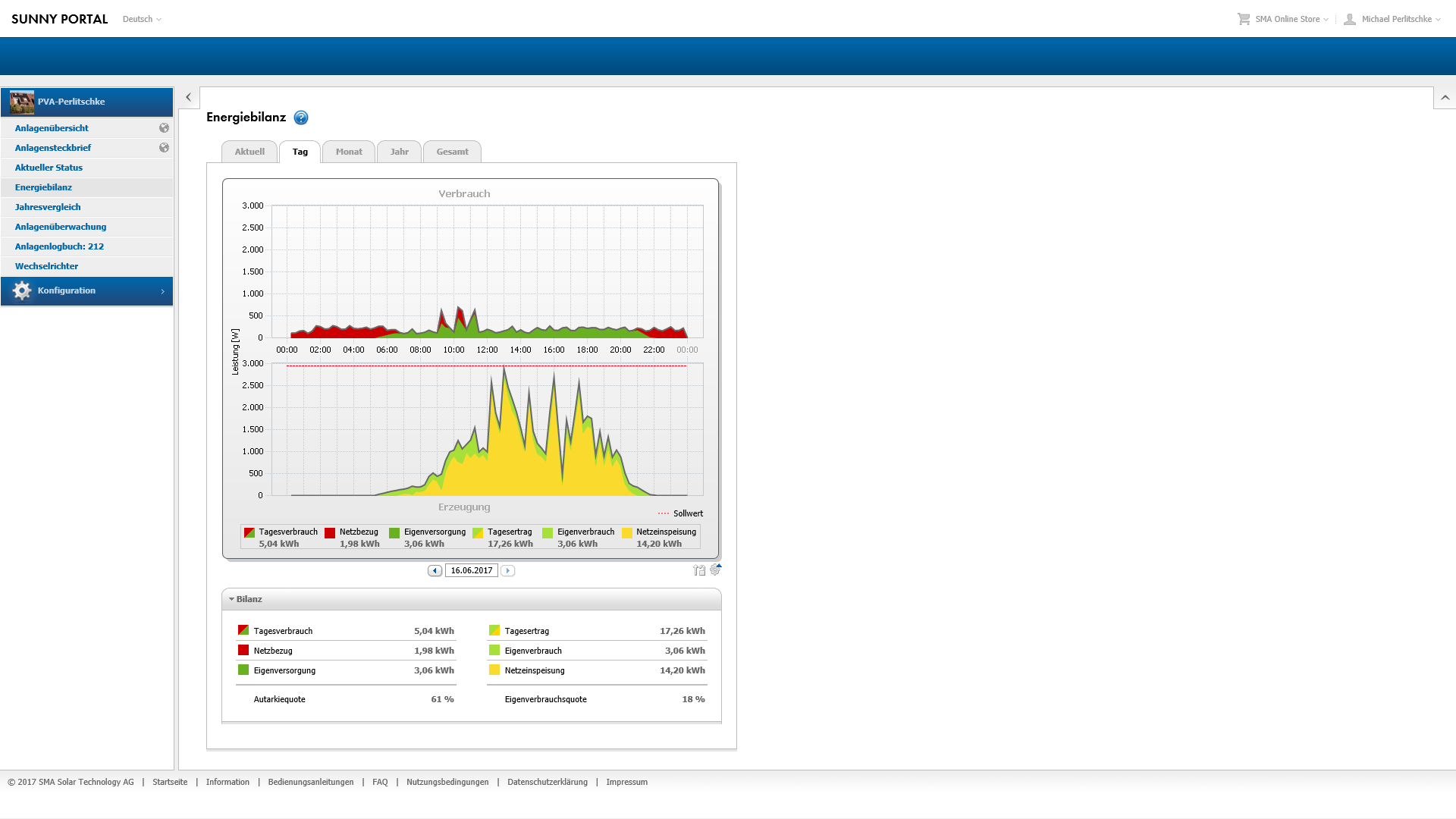 Re: Solaranlage: Inbetriebnahme 16.10.2016; 17 Uhr; Tag 0