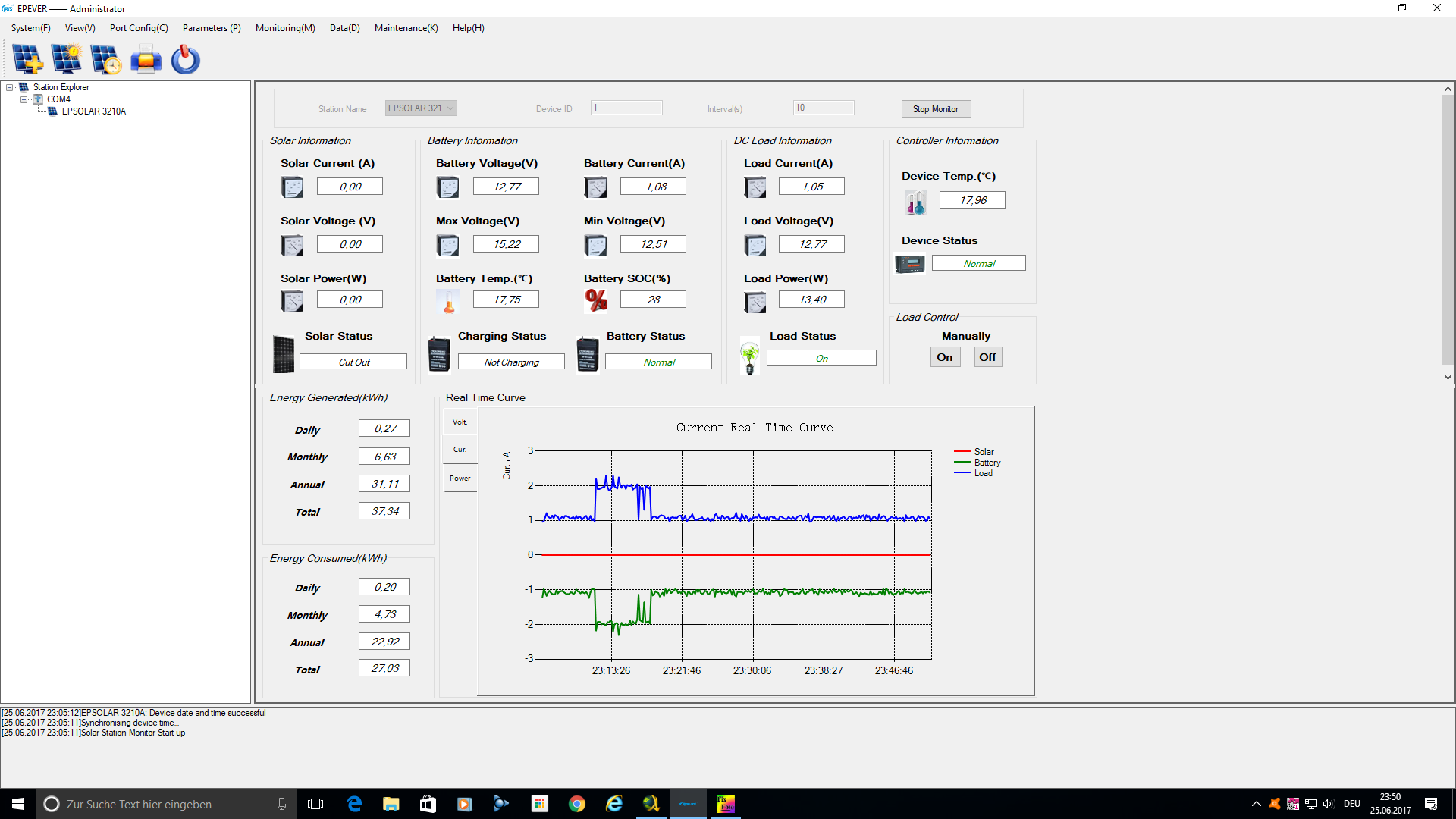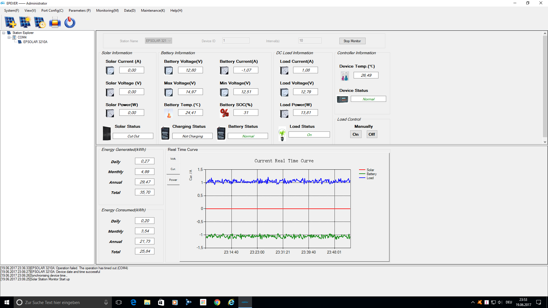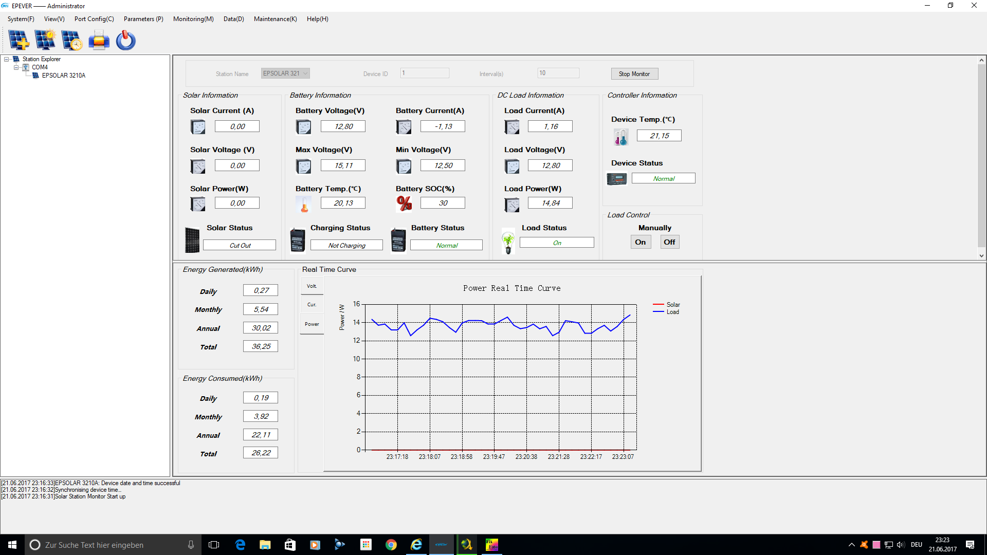 Wie sieht es also seit dem 3 April bis Heute dem 17 Juni aus? Produziert wurden 1280kwh Strom. Davon habe ich 1031kwh ins Netz verkauft also 127 Euro eingenommen. Die Differenz ist der Eigenverbrauch von 249kwh mit einem Preisvorteil im Vergleich wenn ich diesen normal gekauft haette von 50 Euro. Das ergibt einen Gewinn von 177 Euro. Zukaufen musste ich in dieser Zeit 204kwh vom Energieversorger (in der Zeit in der die Anlage wegen Dunkelheit kein Strom produzierte) was mich 61 Euro kostet. Somit bleiben unterm Strich noch 116 Euro als Gewinn und eine Stromrechnung von "0,00" Euro seit dem 3 April. Hinzu kommt auch das ich Tagsueber nicht mehr drauf achte wie lange ein Verbraucher laeuft, da ich Tagsueber wenn die Sonne vom Himmel lacht die vollen 4000 Watt ausnutzen kann. In der Praxis operiert die Anlage dann bei 2940 Watt (70% Regelung) Einspeisung und der Lastverbrauch des Hauses kommt oben drauf (dynmamische 70% Regelung). Somit pendelt der vom Wechselrichter weitergegebene Strom immer zwischen 3200 und 3300 Watt herum. 700 Watt werden also im Wechselrichter nutzlos vernichtet, aber auch nur ab 13:30 Uhr bis 17:30 Uhr wenn die Sonne volle Pulle auf die Panel knallt liegen diese 4000 Watt auch an. Also ist es so dass ich auf den Stromverbrauch im Haus ab Mittag nicht wirklich achte da man aus dem vollen Schoepfen kann. Das geht natuerlich auch zwischen 9 Uhr und 19 Uhr, da selbst wenn Wolken am Himmel stehen und es regnen sollte jederzeit mehr vom Dach kommt als das Haus mit den ueblichen Standardverbrauchern wie TV,. Computer; Server; 2 Kuehlschraenke etc.p.p. benoetigt. Wirklich ganz toll sich da keine grossen Gedanken mehr wegen der nicht mehr vorhandenen Stromkosten machen zu muessen (das bedeutet nun nicht, dass man zu einem Verschwender mutiert) wenn es hell draussen ist. Das macht grossen Spass und ist Freiheit und destillierter Luxus! Das was man verbraucht stellt einem die Anlage CO2 Neutral und quasi Kostenlos zur Verfuegung, denn die Sonne schickt einem bekanntlich keine Rechnung...