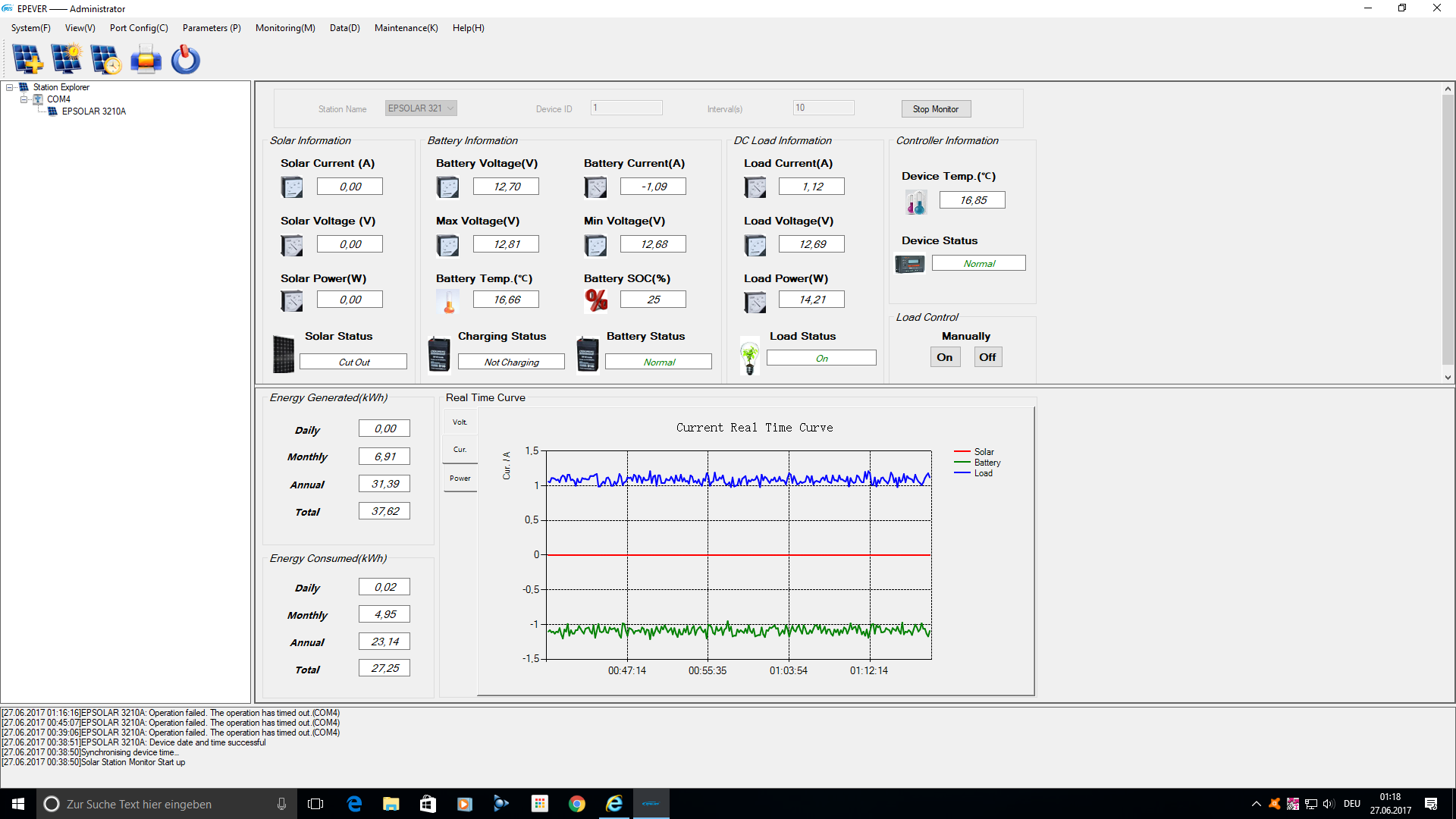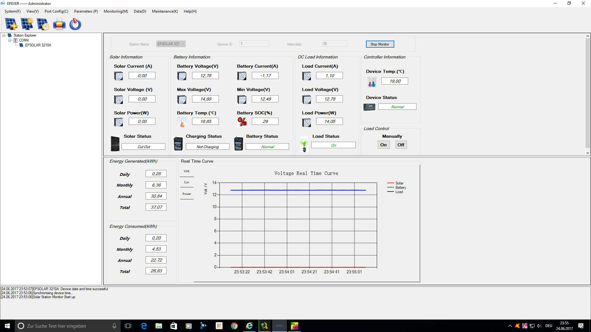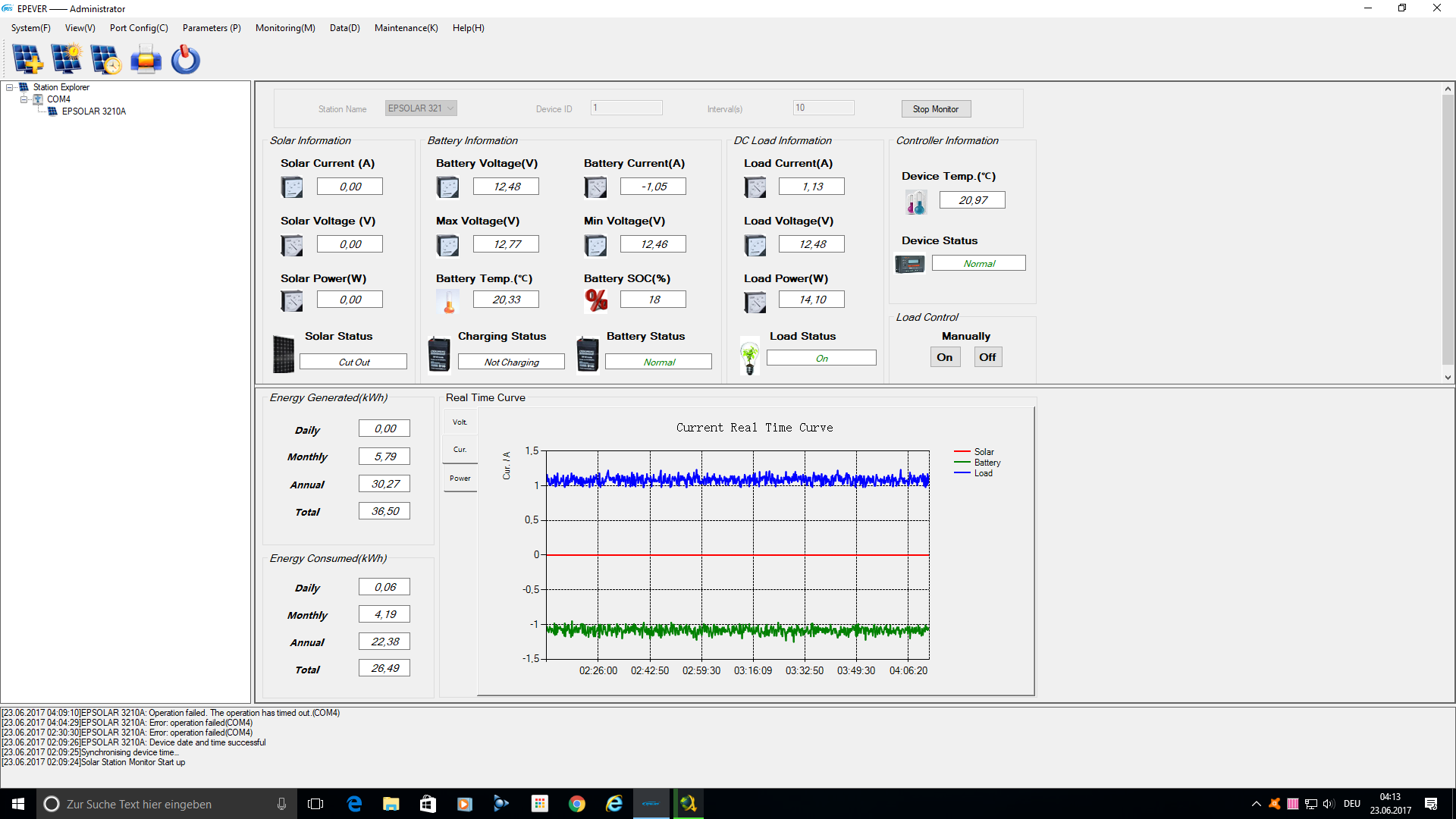 Wie sieht es also seit dem 3 April bis Heute dem 17 Juni aus? Produziert wurden 1280kwh Strom. Davon habe ich 1031kwh ins Netz verkauft also 127 Euro eingenommen. Die Differenz ist der Eigenverbrauch von 249kwh mit einem Preisvorteil im Vergleich wenn ich diesen normal gekauft haette von 50 Euro. Das ergibt einen Gewinn von 177 Euro. Zukaufen musste ich in dieser Zeit 204kwh vom Energieversorger (in der Zeit in der die Anlage wegen Dunkelheit kein Strom produzierte) was mich 61 Euro kostet. Somit bleiben unterm Strich noch 116 Euro als Gewinn und eine Stromrechnung von "0,00" Euro seit dem 3 April. Hinzu kommt auch das ich Tagsueber nicht mehr drauf achte wie lange ein Verbraucher laeuft, da ich Tagsueber wenn die Sonne vom Himmel lacht die vollen 4000 Watt ausnutzen kann. In der Praxis operiert die Anlage dann bei 2940 Watt (70% Regelung) Einspeisung und der Lastverbrauch des Hauses kommt oben drauf (dynmamische 70% Regelung). Somit pendelt der vom Wechselrichter weitergegebene Strom immer zwischen 3200 und 3300 Watt herum. 700 Watt werden also im Wechselrichter nutzlos vernichtet, aber auch nur ab 13:30 Uhr bis 17:30 Uhr wenn die Sonne volle Pulle auf die Panel knallt liegen diese 4000 Watt auch an. Also ist es so dass ich auf den Stromverbrauch im Haus ab Mittag nicht wirklich achte da man aus dem vollen Schoepfen kann. Das geht natuerlich auch zwischen 9 Uhr und 19 Uhr, da selbst wenn Wolken am Himmel stehen und es regnen sollte jederzeit mehr vom Dach kommt als das Haus mit den ueblichen Standardverbrauchern wie TV,. Computer; Server; 2 Kuehlschraenke etc.p.p. benoetigt. Wirklich ganz toll sich da keine grossen Gedanken mehr wegen der nicht mehr vorhandenen Stromkosten machen zu muessen (das bedeutet nun nicht, dass man zu einem Verschwender mutiert) wenn es hell draussen ist. Das macht grossen Spass und ist Freiheit und destillierter Luxus! Das was man verbraucht stellt einem die Anlage CO2 Neutral und quasi Kostenlos zur Verfuegung, denn die Sonne schickt einem bekanntlich keine Rechnung...
