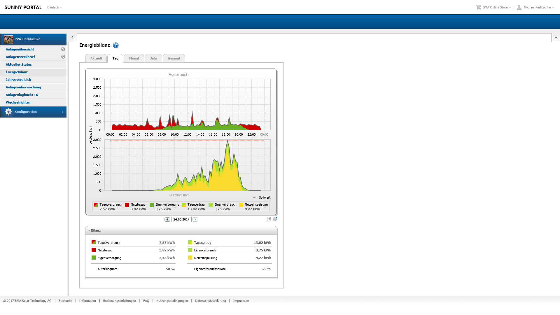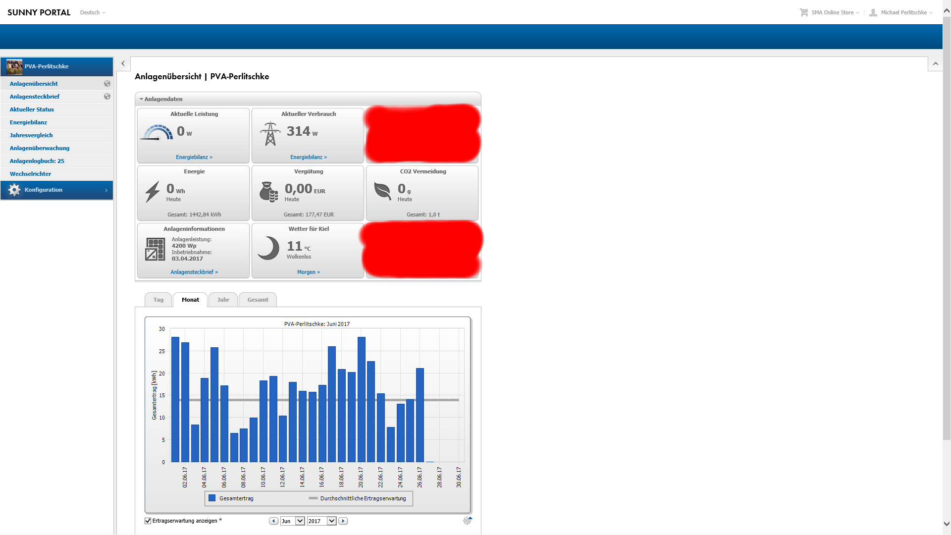 Das mit der Dach-Solaranlage war eine der BESTEN ENTSCHEIDUNGEN und INVESTITION mit beachtlicher Rendite seit langem. Nur meine kostenlosen USA-Ausfluege tendieren in die gleiche Rendite-Richtung. Kostenloser Luxus ist nun mal immer geil und auch verdammt sexy! Ich steh da voll drauf und haette nicht gedacht das einem einem Solar-Anlage auf dem Dach so sensibel fuer Verbraeuche und die laufenden nicht gerade unerheblichen Kosten werden laesst. Was nun im Herbst wenn die Heizpoeriode anfaengt spannend wird, ist zu monitoeren was die Heizungspumpe an Strom wegballern wird, denn ich weiss aus dem April (habe das aus den USA genau beobachtet) das immer wenn die lief der Grundlast-Verbrauch segnifikant nach oben ging. Hinzu kommt noch das Gas, was aber vom Energiegehalt umgerechnet auf herkoemmlichen Strom mit ca. 6-7 Cents noch rel. guenstig ist. Dennoch bin ich schon dabei zu schauen was aktuelle Vaillant-ECO Systeme mit Hoch-Effizienzpumpen an Strom ziehen und wie sich das auf die Jahre bezueglich der Kostenersparnis STROM & GAS bemerkbar macht. Vielleicht werde ich die Heizung dann doch ein paar Jahre frueher als geplant ersetzen insbesondere auch deswegen weil ich mittels Smartphone und dem Internet vollen Zugriff auf die Heizung habe und diese unterwegs bequemer steuern kann. Von einer opt. Waermepumpe bin ich wieder weg, weil diese dummerweise immer nur dann zum Heizen benoetigt wird, wenn leider wenig Strom vom Dach kommt. Also muesste ich teuren Strom in die Waermepumpe schaufeln, welche dann die Heizung unterstuetzt. Da kann man auch auf die Investition verzichten und gleich billiges GAS verbrauchen und stattdessen auf ein effizienteres schlankes Heiz/Warmwasser Kombi-System (Vaillant Gas-Brennwertgeraet ecoTEC exclusive VCW bis 32 kW) setzen. Das haette auch den Vorteil das der Aus & Einbau sehr schnell und kostenguenstig erledigt waere...