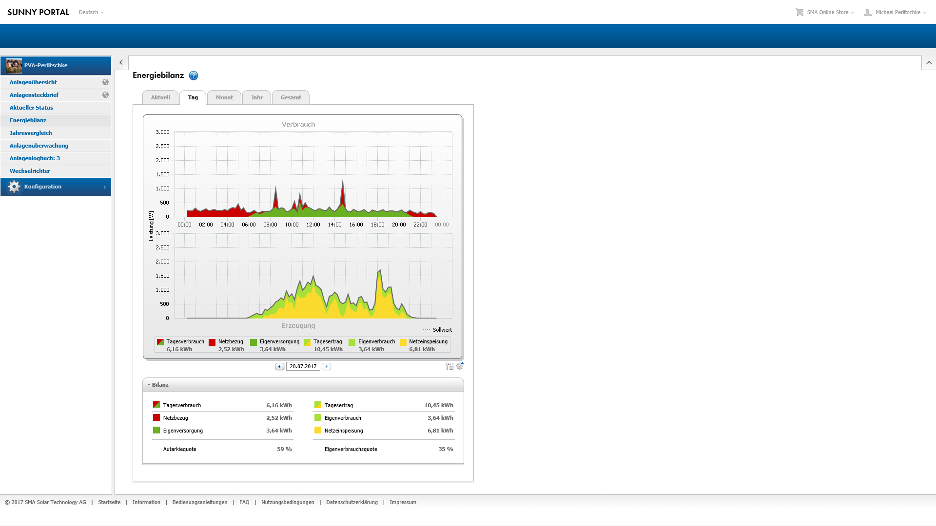 Re: Solaranlage: Inbetriebnahme 16.10.2016; 17 Uhr; Tag 0