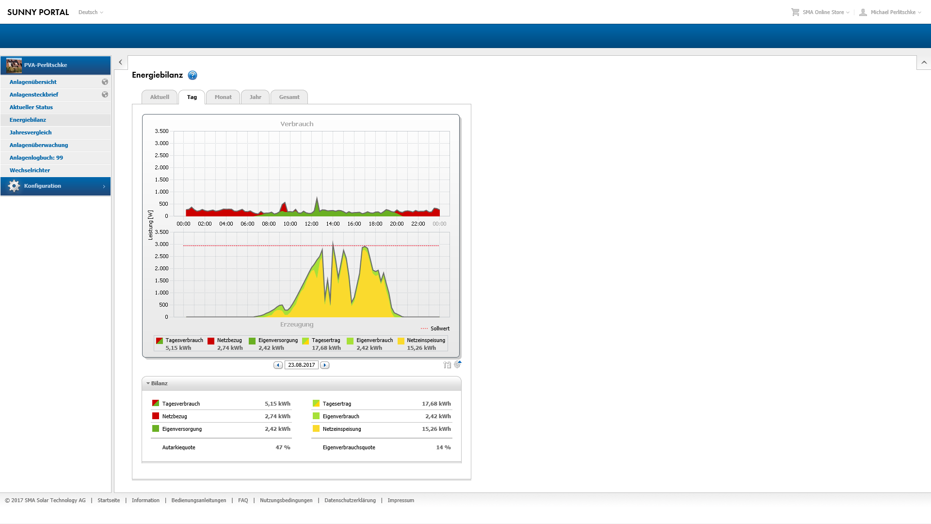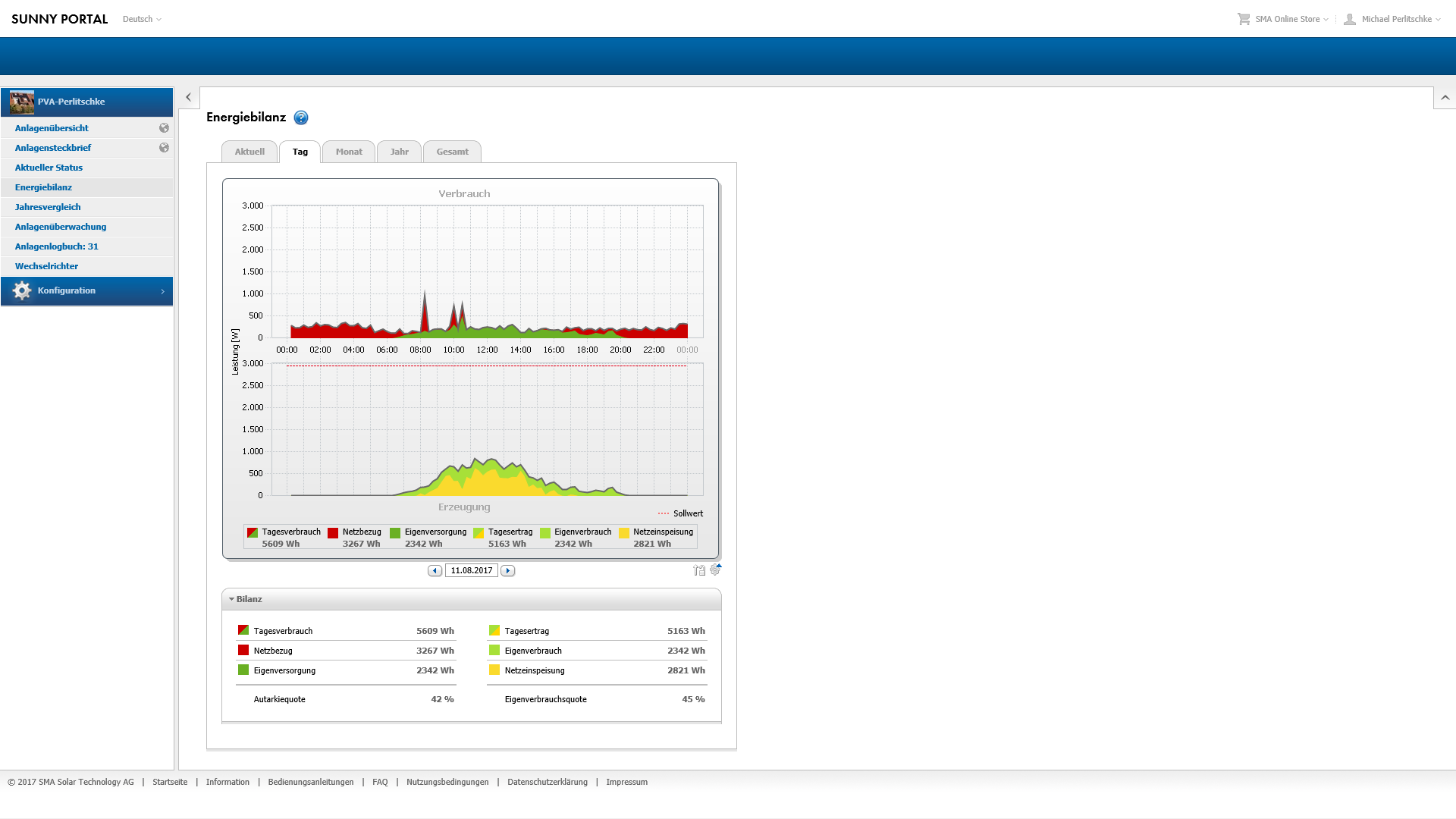 Solaranlage: Inbetriebnahme 16.10.2016; 17 Uhr; Tag 0
