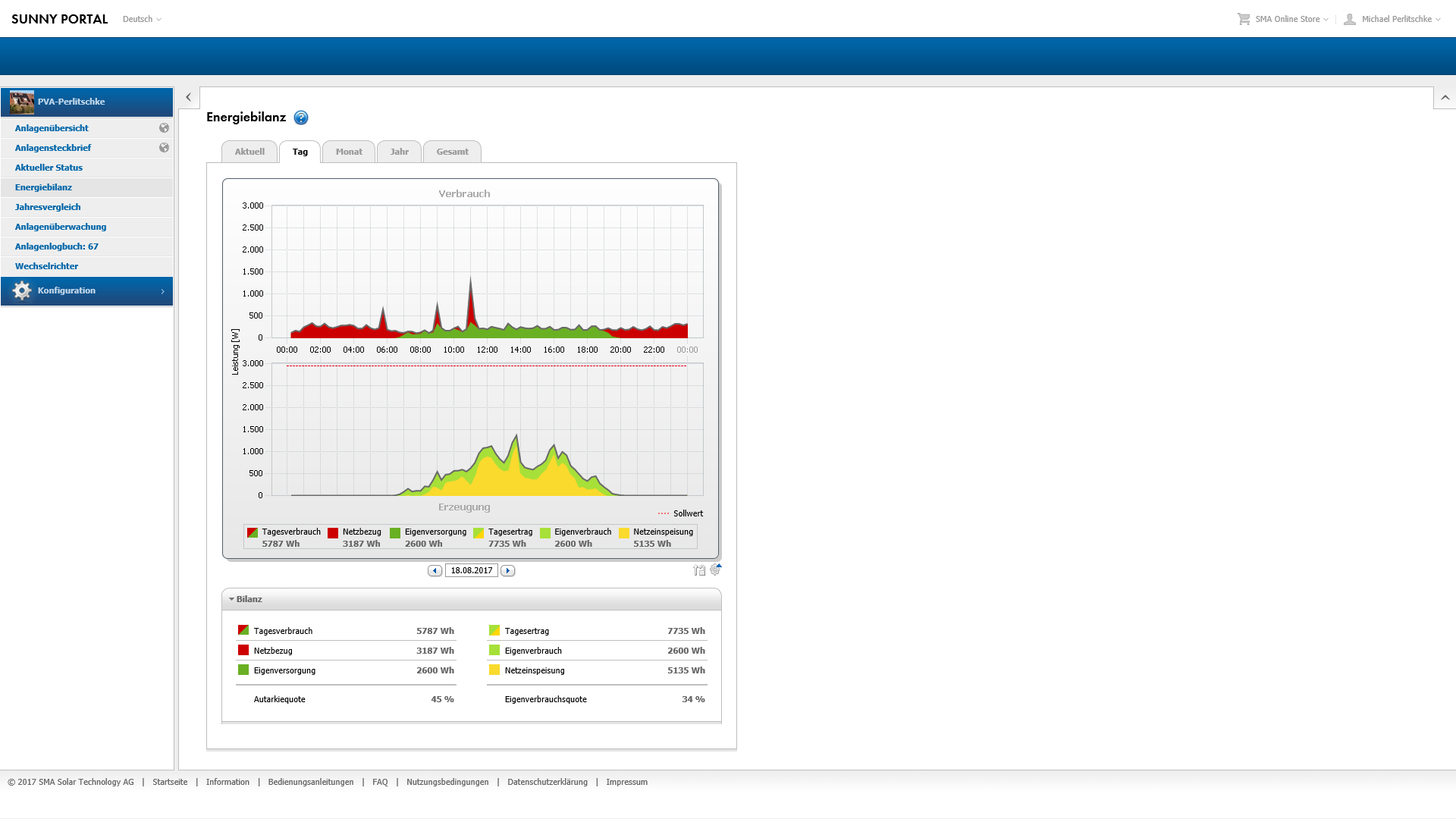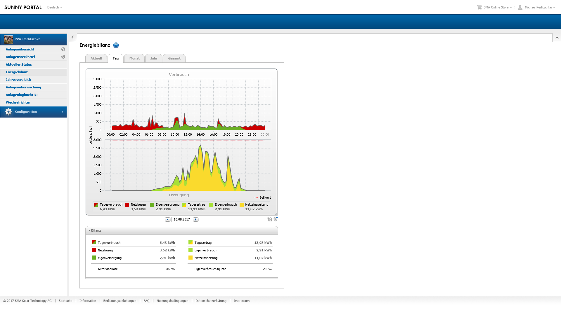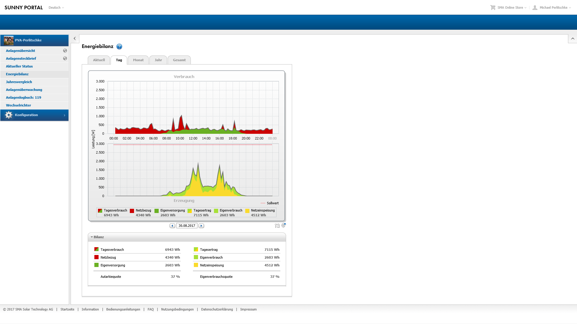 Re: Solaranlage: Inbetriebnahme 16.10.2016; 17 Uhr; Tag 0