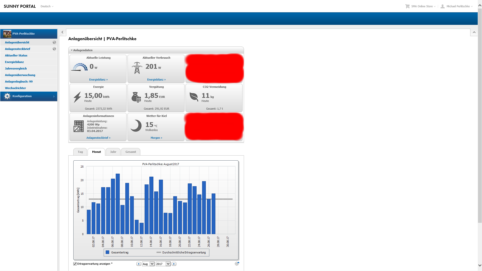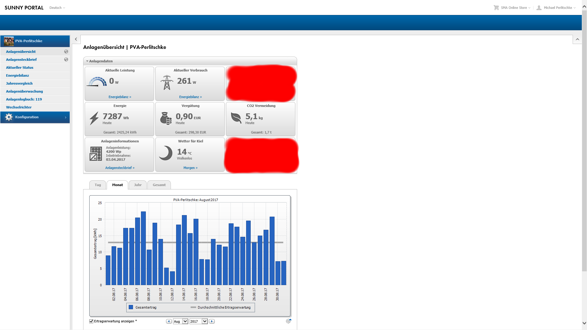 Nun bin ich mal gespannt wie der August verlaufen wird. Denn hier liegt die Ertragserwartung bei 400,85kwh. Drueckt mal die Daumen das wir einen schoenen August bekommen
