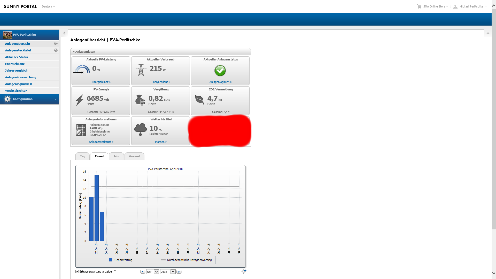 Also alles laeuft sehr erfreulich und besser als von meinem Solateur prognostiziert. Ok, diese rechnen vor der Installation der Anlage immer rech konservativ, damit die Erwartungshaltung des Kunden erfuellt werden und die Projektion bezueglich der Rentabilitaet auch realistisch bleibt. Ich bin also bisher extrem zufrieden...