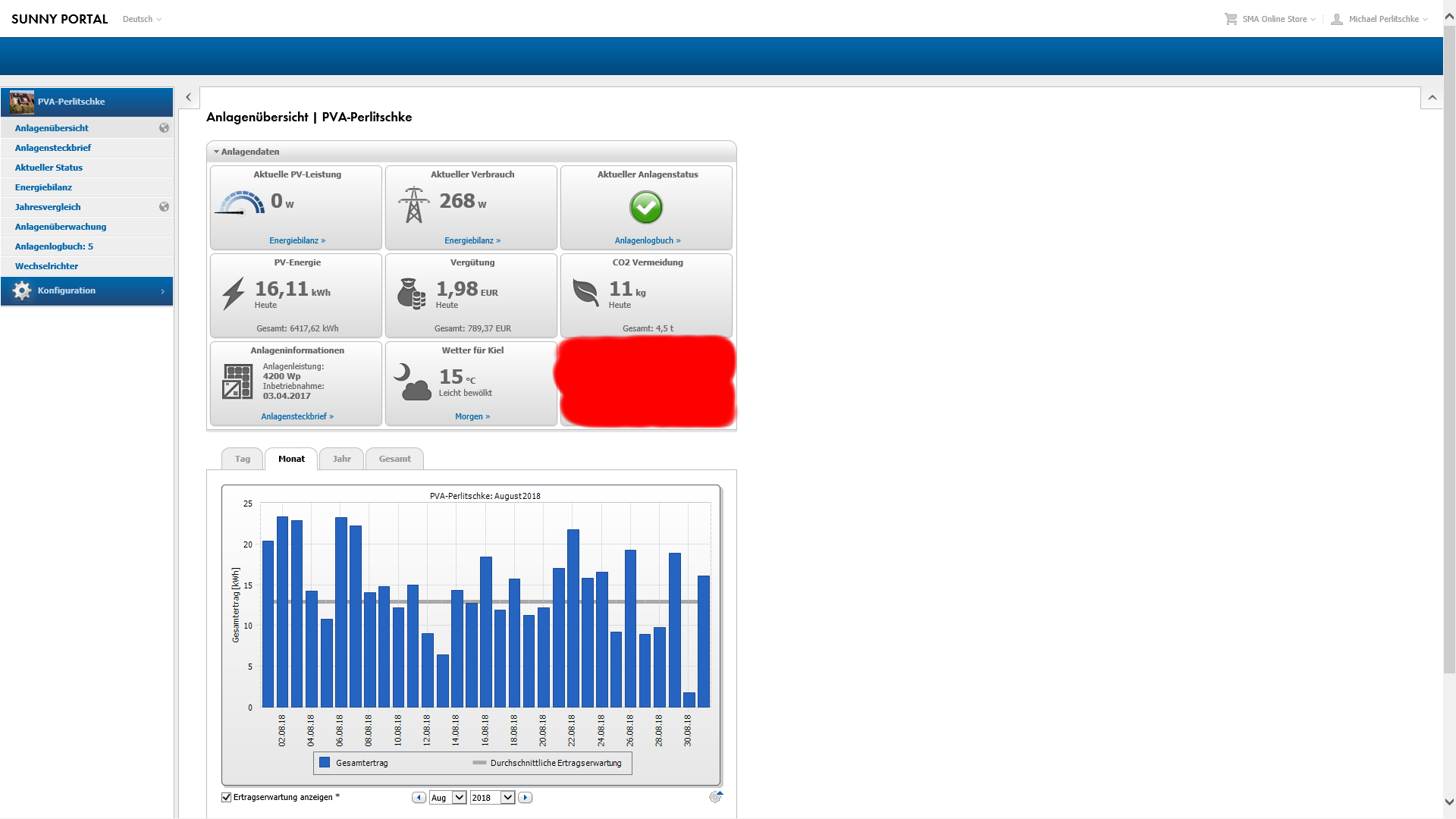 200 Watt Insel-Solaranlage und 4200 Watt Dach PV-Anlage Report: August 2018